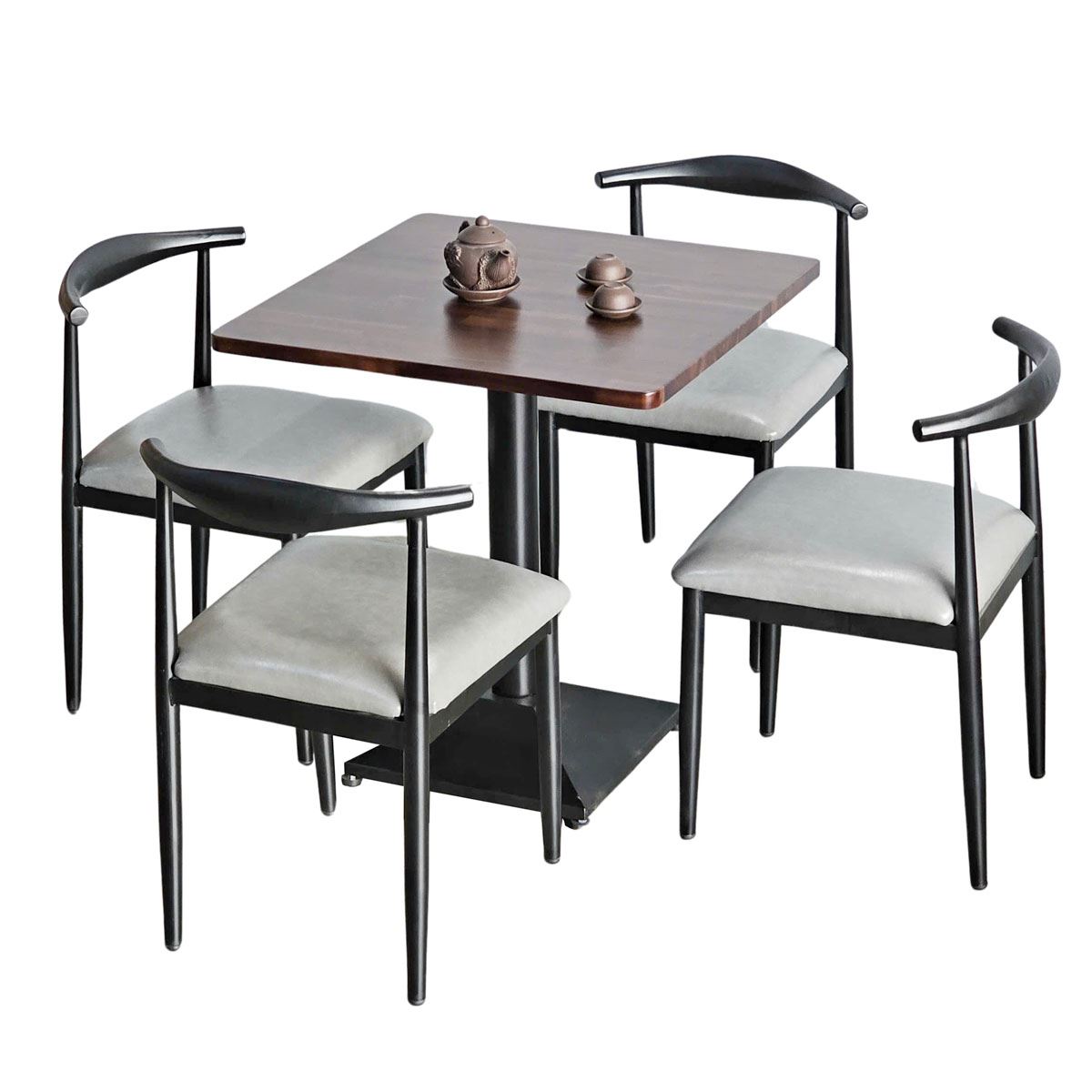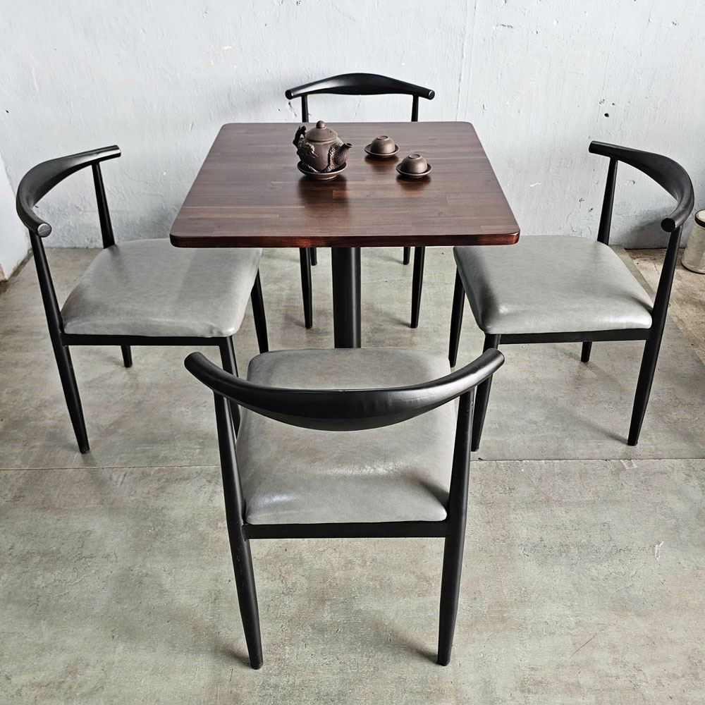 Combo bàn ghế cafe dành cho 4 người ngồi. Trong combo CBCF319 bao gồm 1 bàn cafe 70x70cm gỗ tràm và 4 ghế Bull sắt.