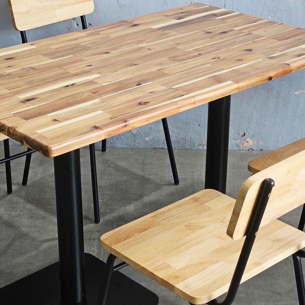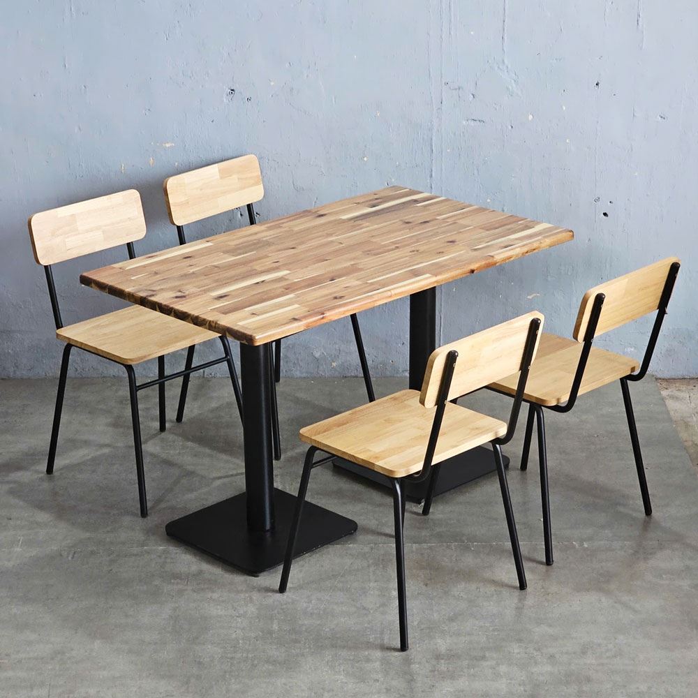 Trong combo BBA181 bao gồm 1 bàn ăn chữ nhật và 4 ghế ăn khung sắt gỗ cao su.