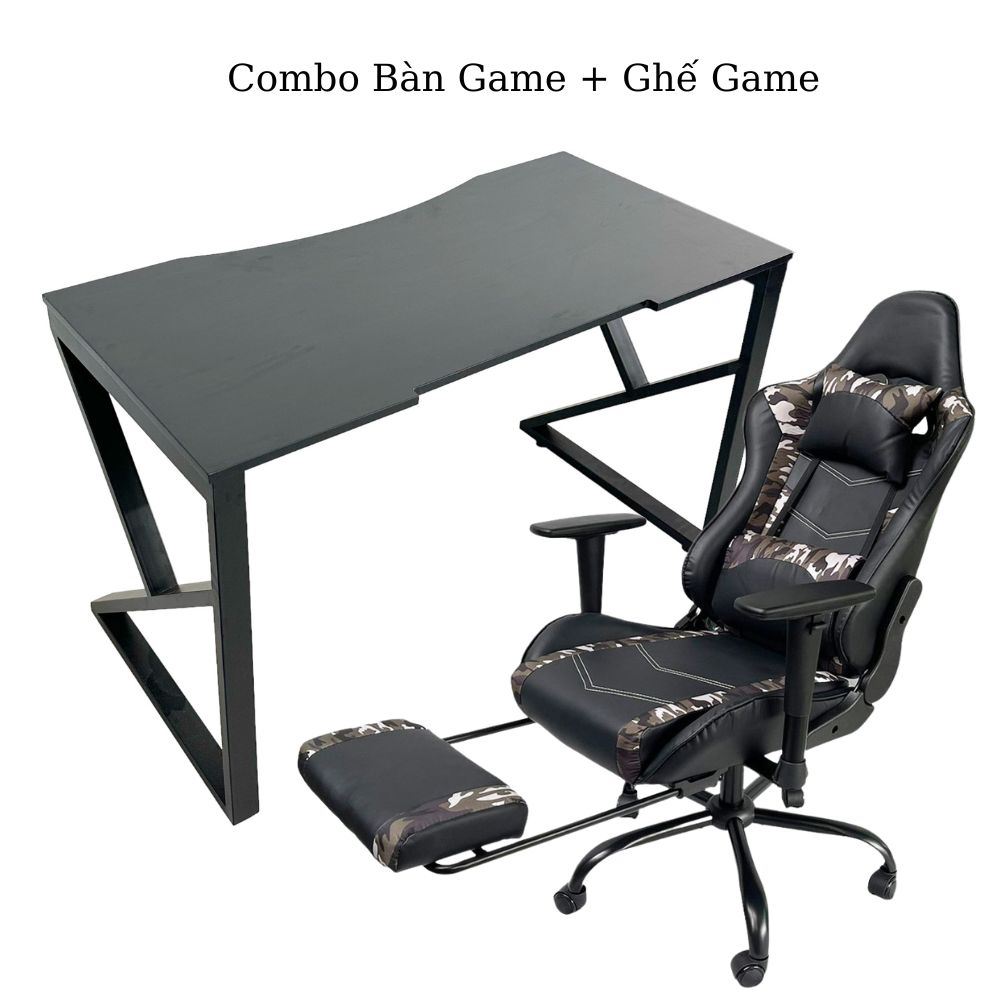 Combo Bàn Game 120cm chân K và ghế Game - CBG68027 bộ sản phẩm là sự kết hợp của Bàn Gaming TaUP gỗ cao su chân sắt Kconcept GD68050 và Ghế chơi game 7188 ngả lưng có gác chân hoạ tiết rằn ri GC68027 tạo nên một bộ bàn ghế dành cho Gamer rất đẳng cấp. Bàn Game chân sắt chữ K lắp ráp của HomeOffice rất chắc chắn và cao cấp, kết hợp với mặt bàn gỗ cao su sơn PU màu đen rất bắt mắt, kích thước bàn 120x60cm vừa đủ để sử dụng. Ghế Game nhiều tính năng cao cấp, bọc da hoạ tiết quân đội rất lạ mắ.