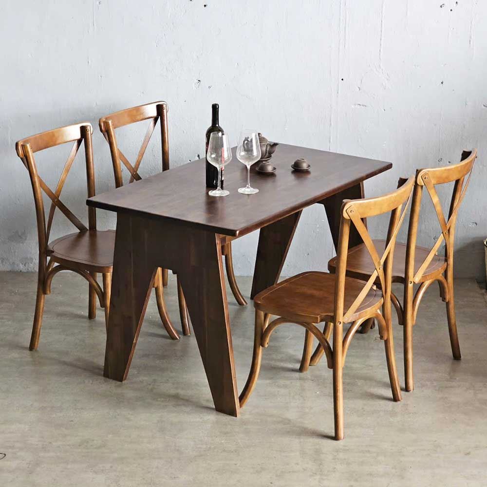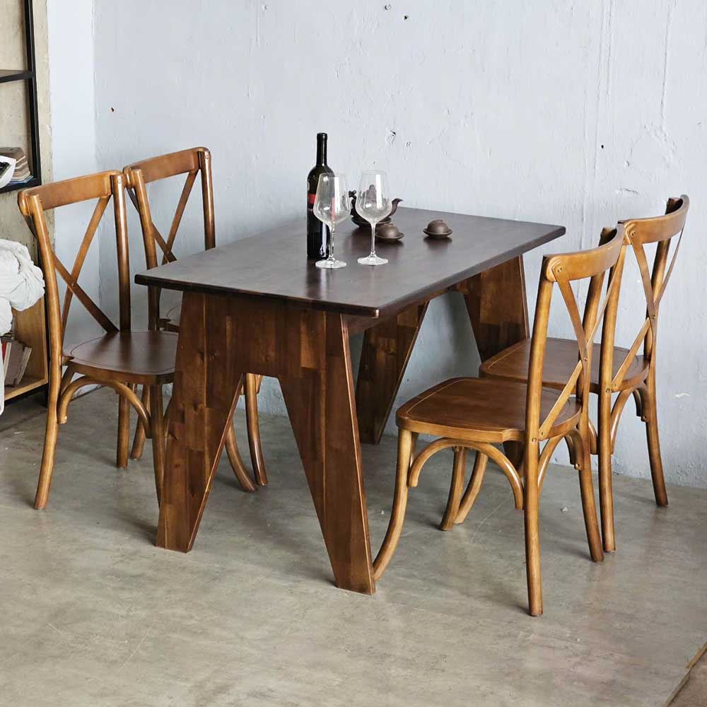 Trong combo BBA170 bao gồm 1 bàn ăn chữ nhật và 4 ghế bistro gỗ.