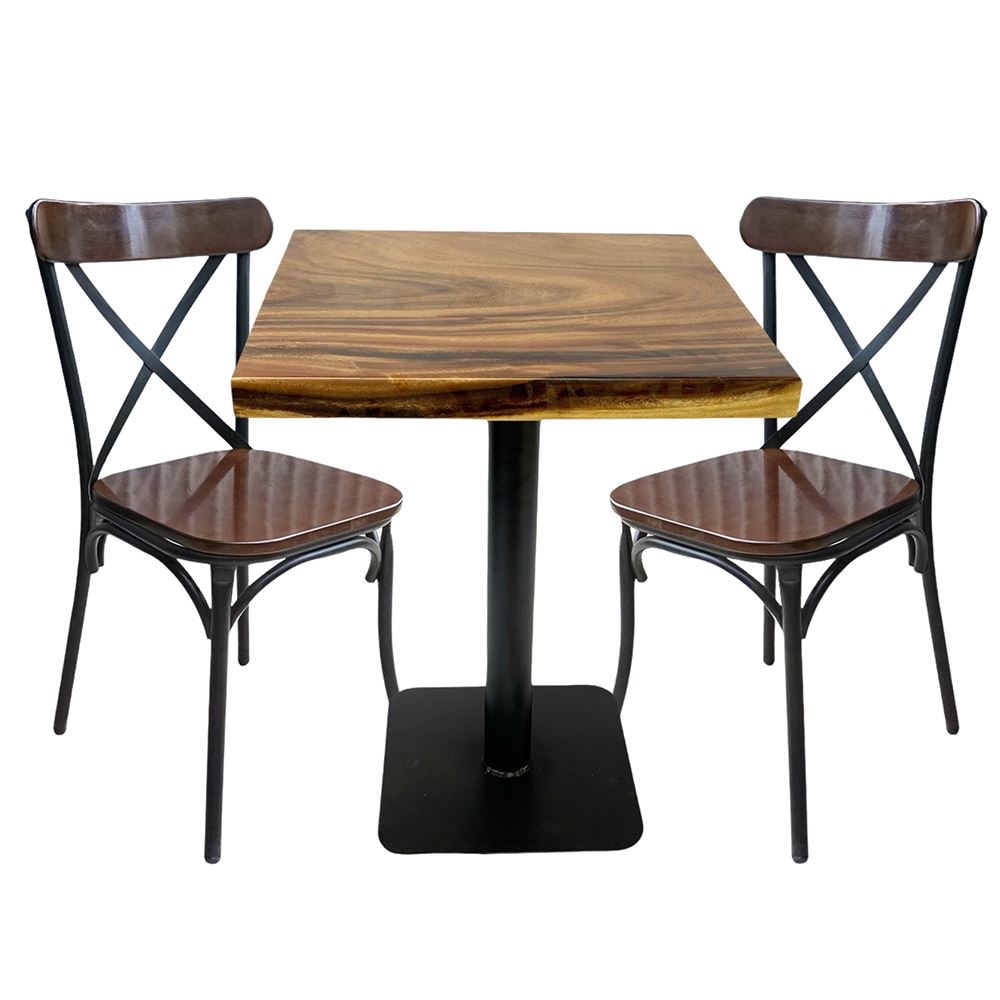 Combo Bàn Gỗ Me Tây Dày 5cm Và 2 Ghế Cafe Lưng Tựa Cong