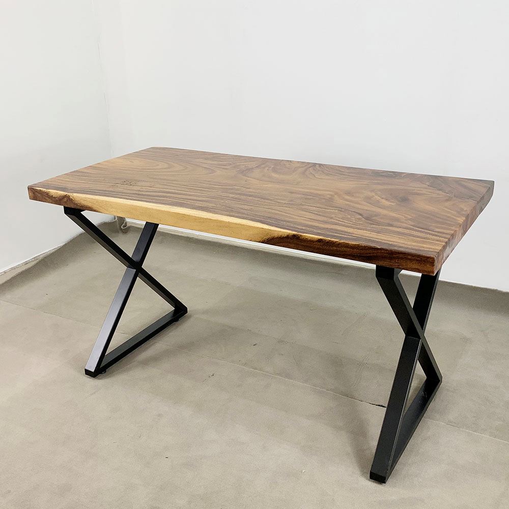 BMT028 - Bàn làm việc gỗ Me Tây 70x140cm chân X với độ dày 5cm gỗ me Tây nguyên tấm dược sấy và xử lý bề mặt PU kỹ càng, mặt bàn nguyên tấm mang vẻ đẹp sang trọng hiện đại kết hợp với chân sắt chữ X đơn giản, tiết kiệm diện tích.