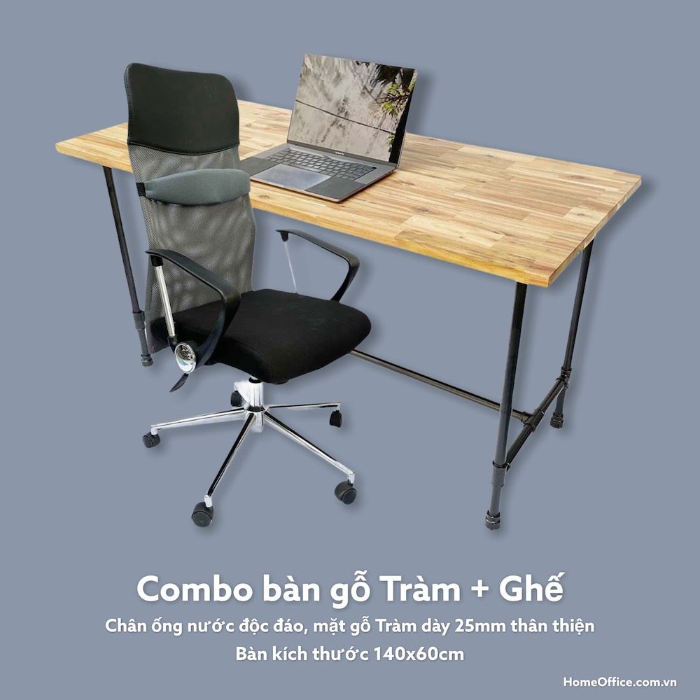 Combo Bàn 140x60cm Gỗ Tràm Chân Ống Nước Và Ghế Làm Việc Cao Cấp