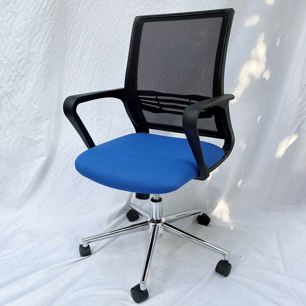 Ghế xoay văn phòng lưng lưới nệm xanh HOM1016-01 lưng ghế được thiết kế với độ cong vừa phải giúp nâng đỡ toàn bộ cột sống, giúp người ngồi tránh bị đau lưng nhức mỏi khi tựa. Đệm ngồi dày 50mm độ đàn hồi cao, tạo cảm giác thoải mái tuyệt đối khi ngồi. Ghế HOM1016-01 được trang bị bộ cần điều khiển với chức năng nâng hạ chiều cao phù hợp với người sử dụng một cách dễ dàng. Nệm ghế màu xanh mang đến sự tươi mới cho không gian làm việc.