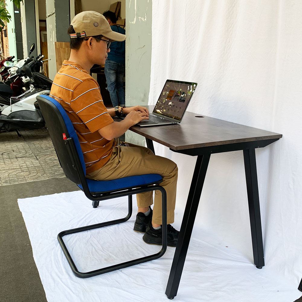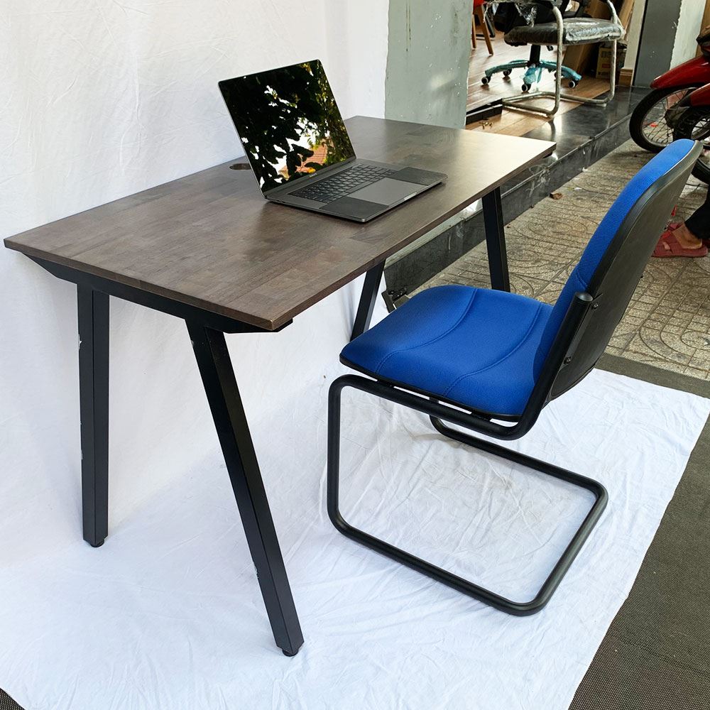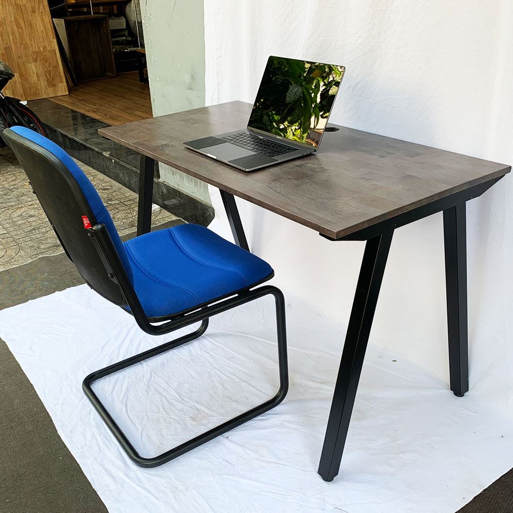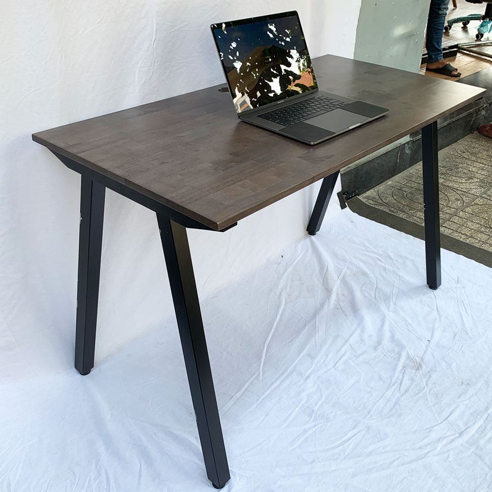 1 Bàn làm việc 120x60cm gỗ cao su chân sắt lắp ráp hệ PLY HBPL004