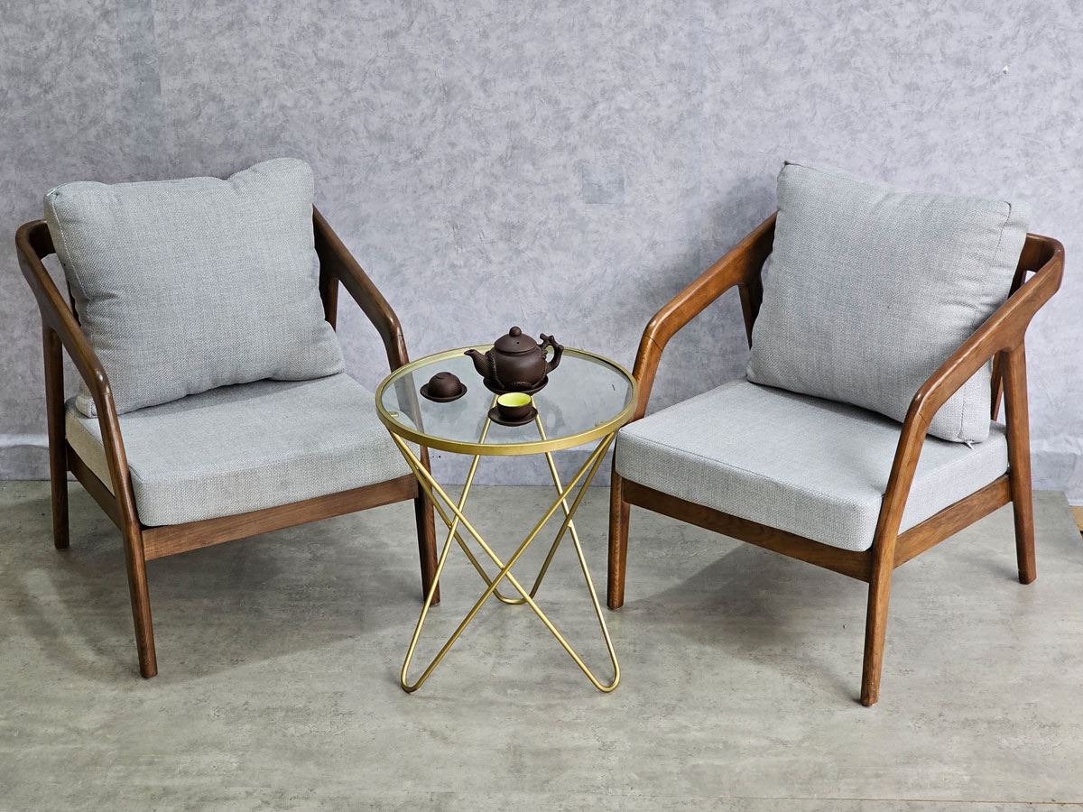 Trong combo CBSF68034 bao gồm 1 bàn bên sofa tròn mặt kính và 2 ghế bành đơn khung gỗ Ash.