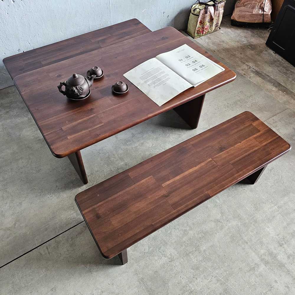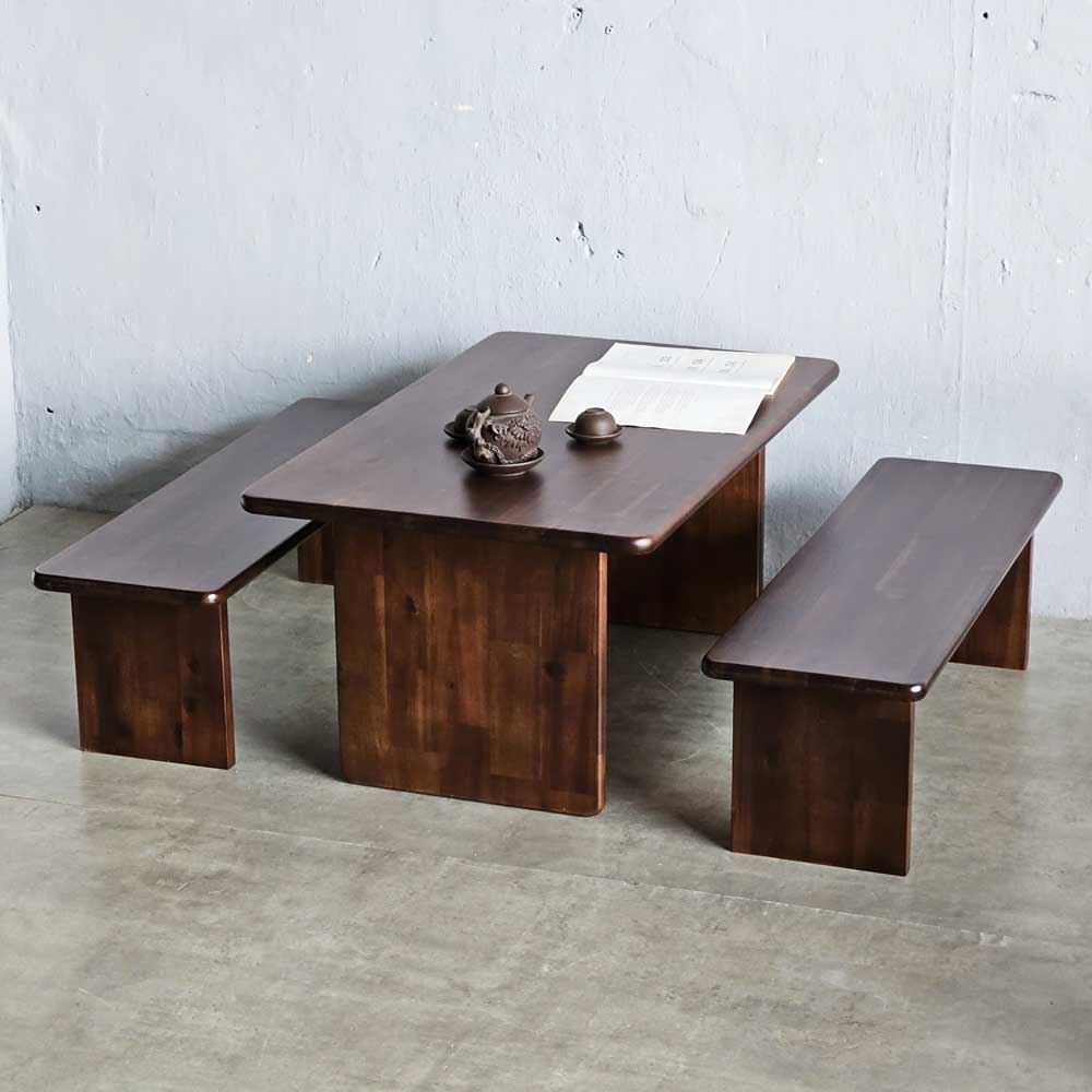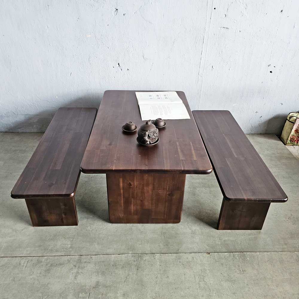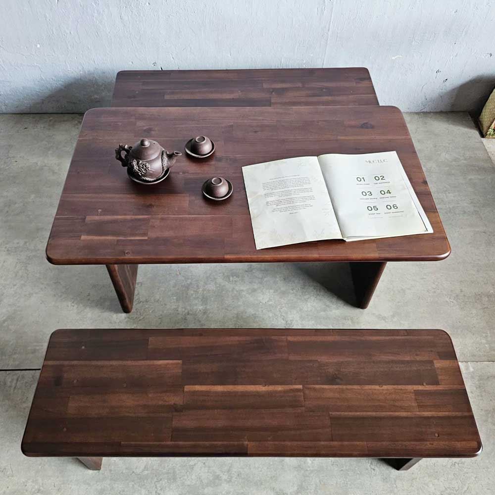 Trong combo CBSF68055 bao gồm 1 bàn trà gỗ và 2 ghế băng thấp.