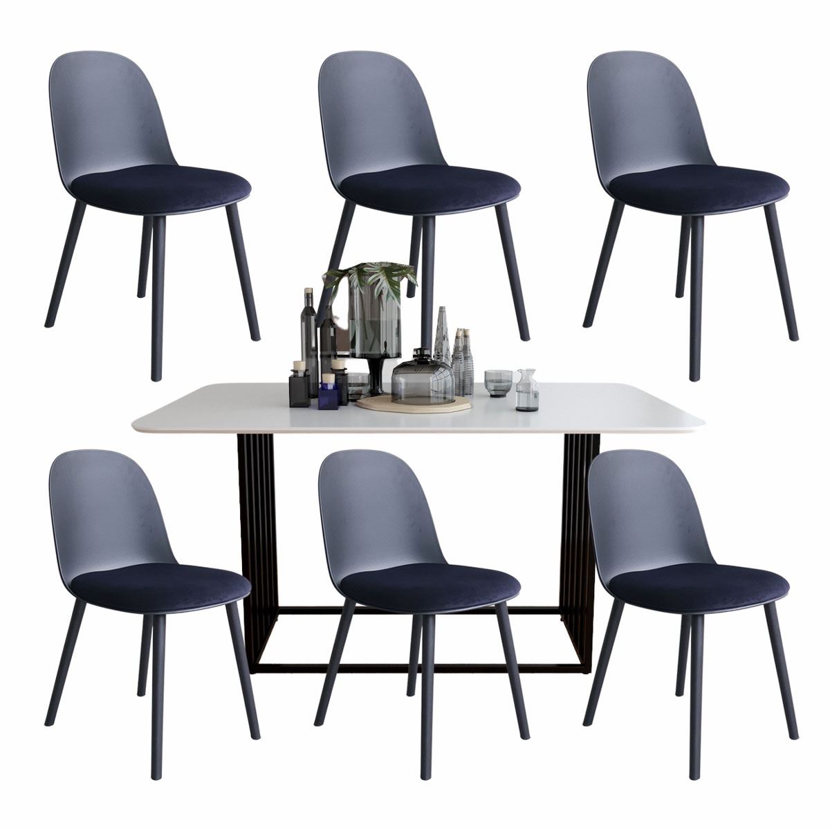 Trong combo CBBA164 bao gồm 1 bàn ăn chữ nhậtvà 6 ghế nhựa bọc nệm
