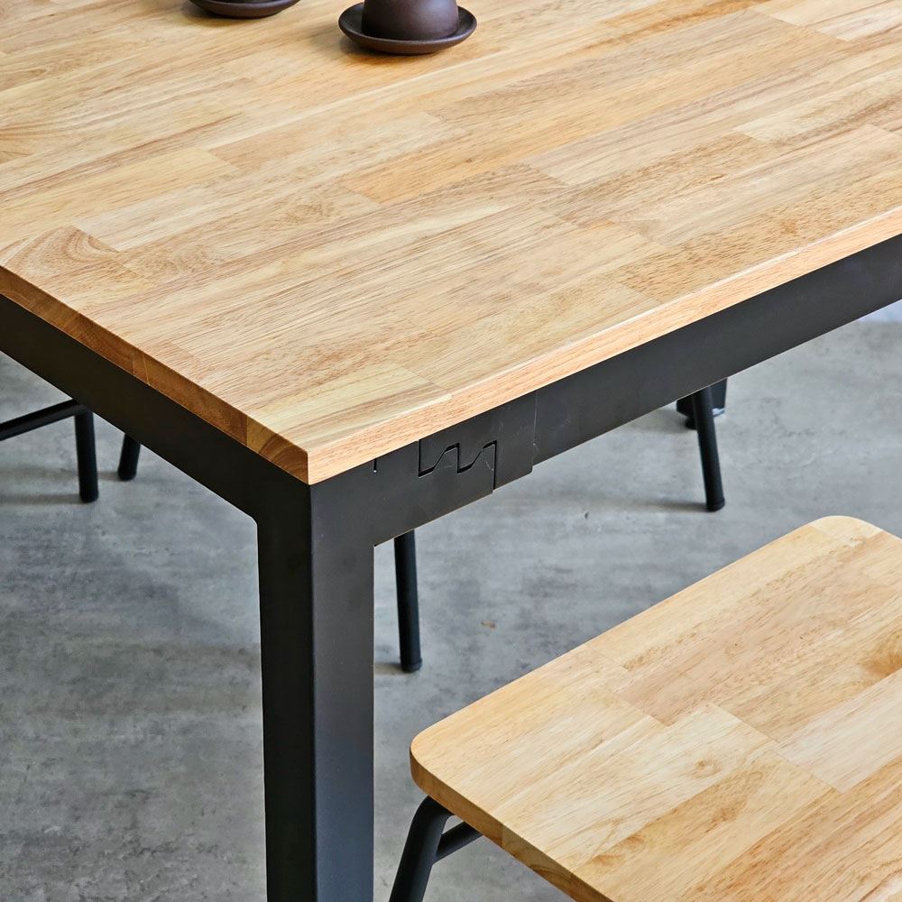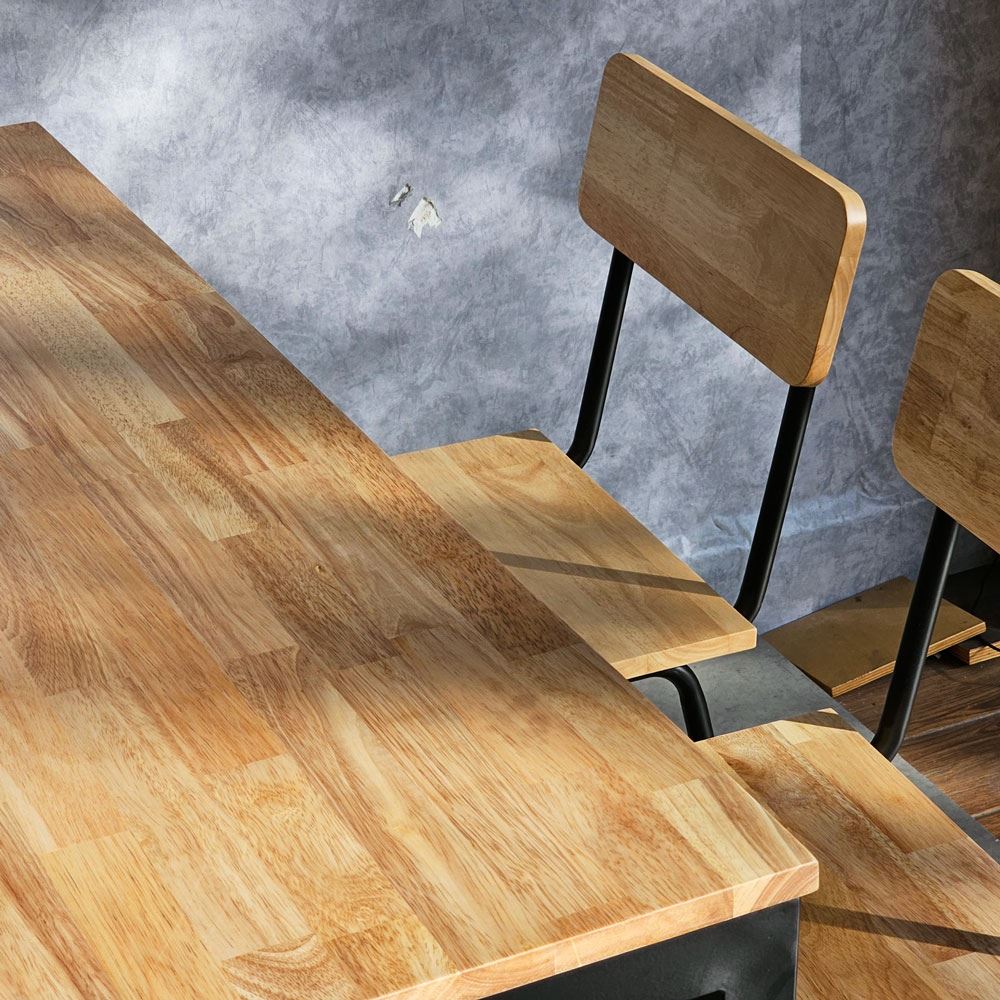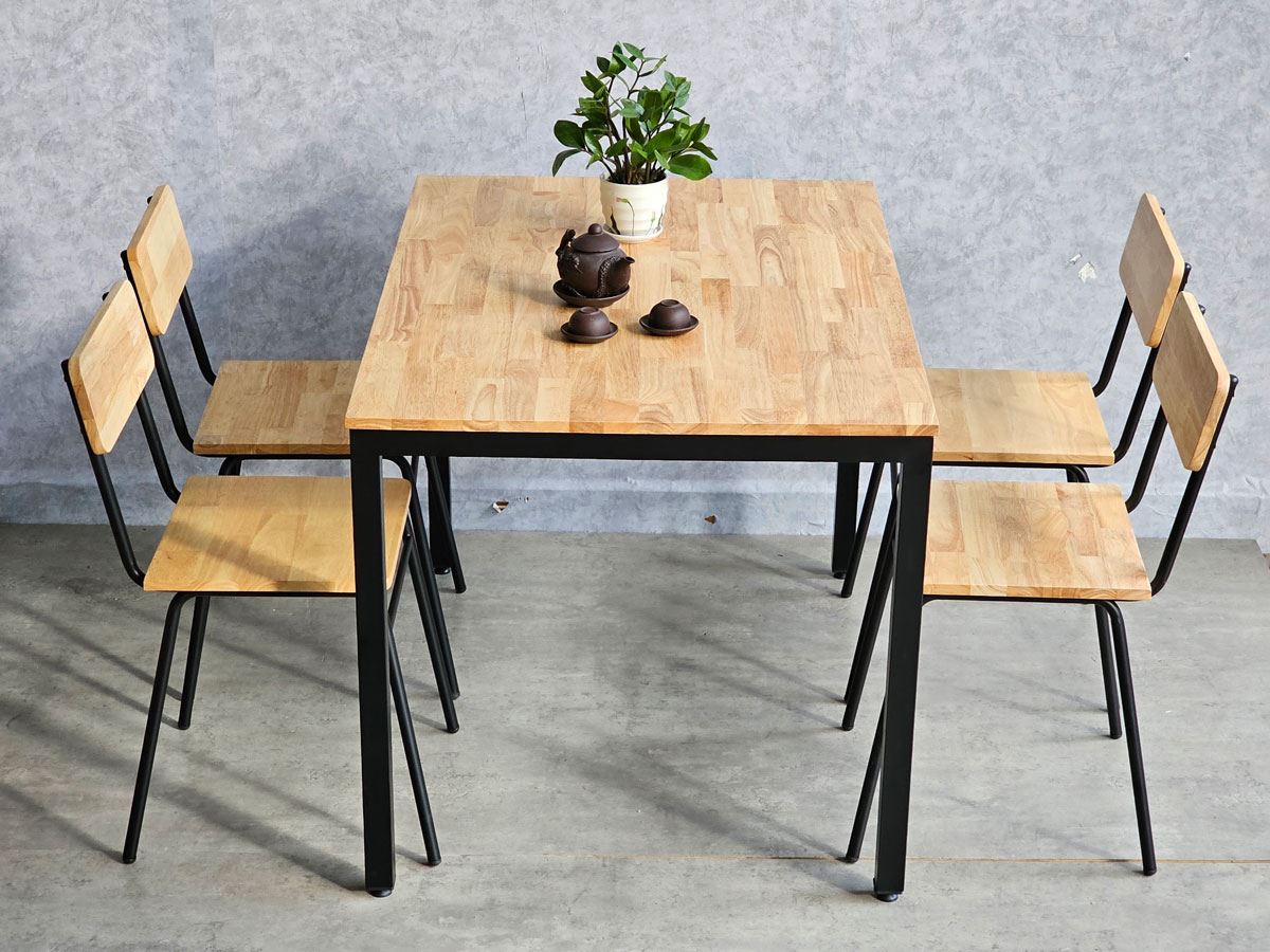 Trong combo CBBA136 bao gồm 1 bàn ăn chữ nhật và 4 ghế ăn khung sắt gỗ cao su.