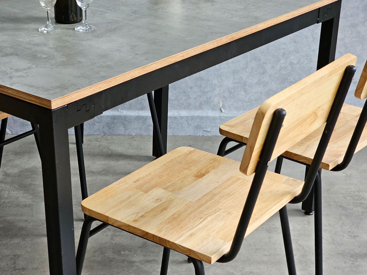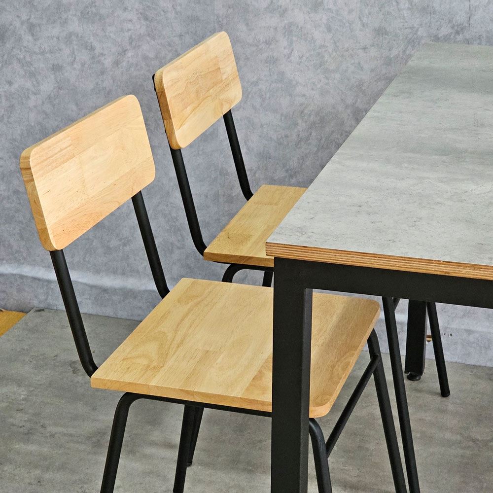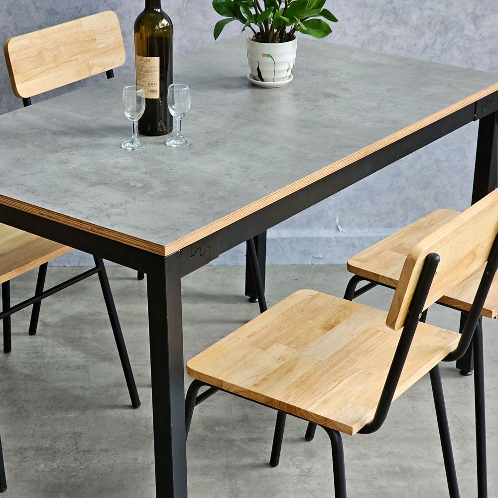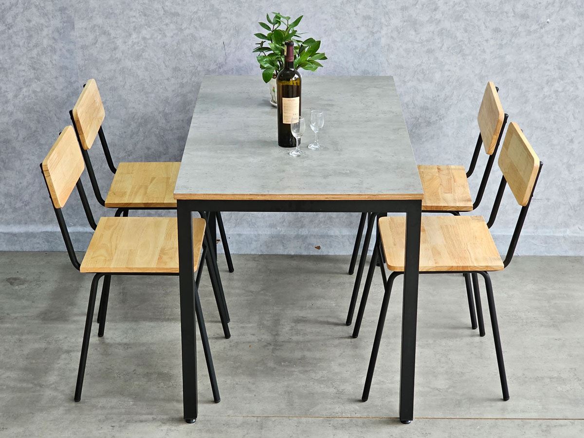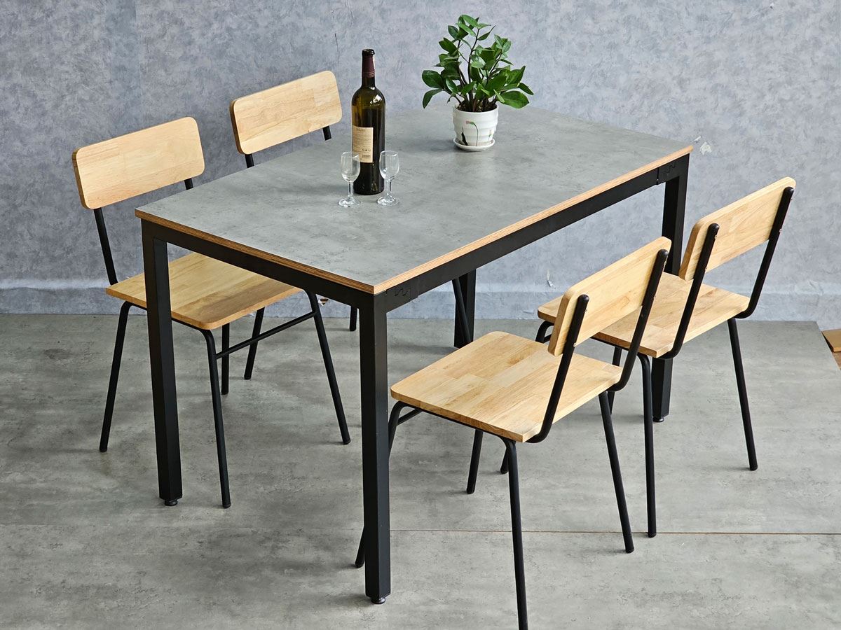 Trong combo CBBA137 bao gồm 1 bàn ăn chữ nhật và 4 ghế ăn khung sắt gỗ cao su.