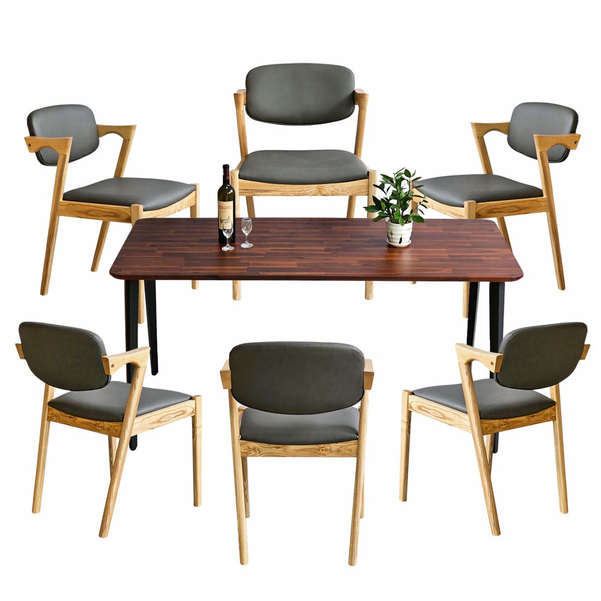 Trong combo CBBA146 bao gồm 1 bàn ăn gỗ tràm và 6 ghế KAI gỗ.