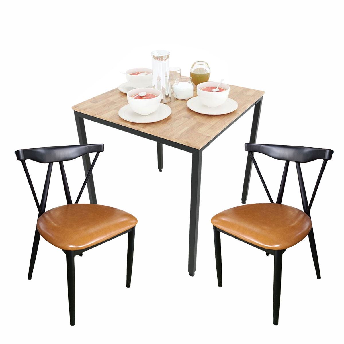 Trong combo CBBA162 bao gồm 1 bàn ăn vuông và 2 ghế khung sắt bọc nệm