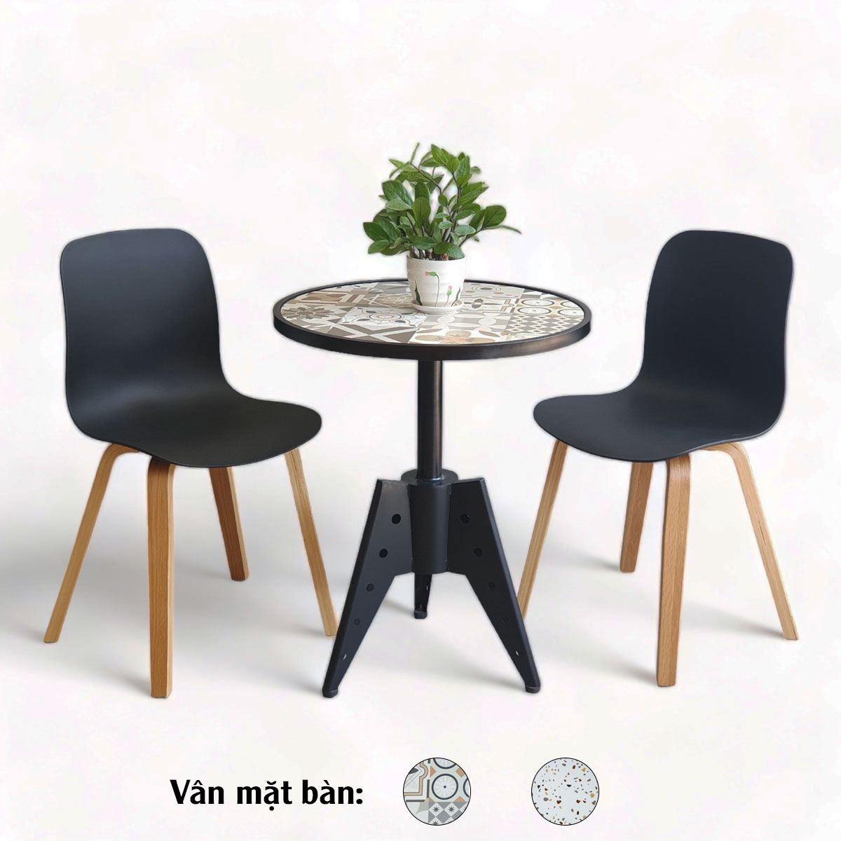 Combo bàn ghế cafe ngoài trời dành cho 2 người ngồi. Trong combo CBCF273bao gồm 1 bàn cafe tròn 60cm và 2 ghế Viso nhựa chân gỗ.