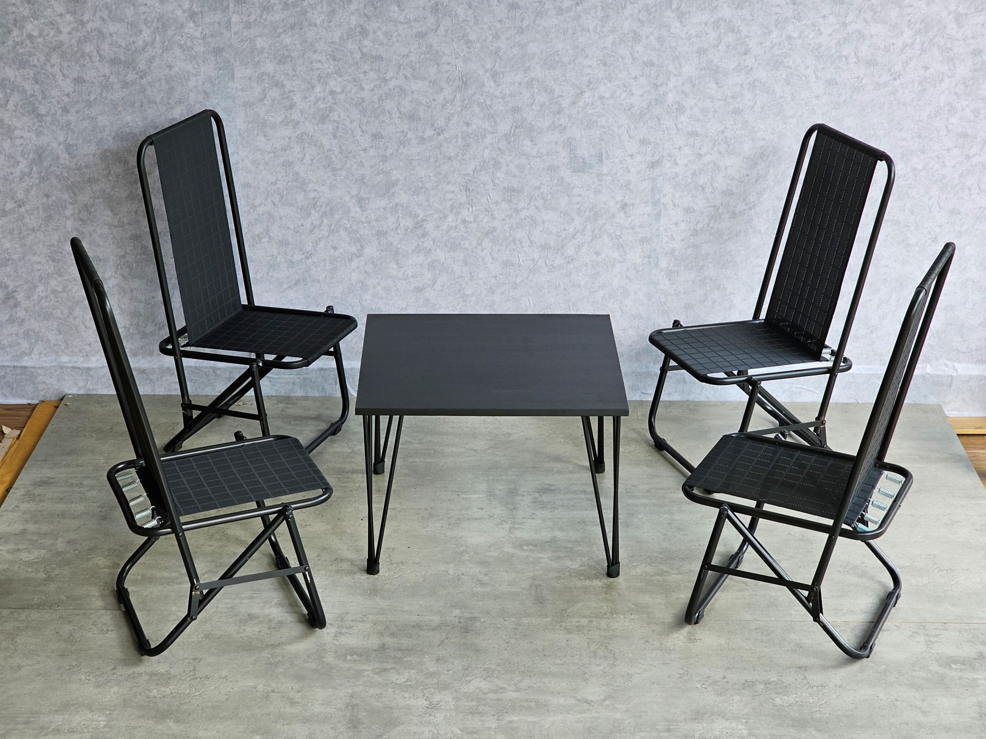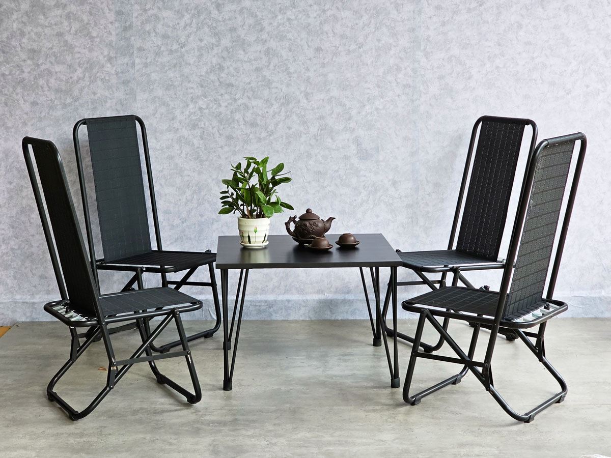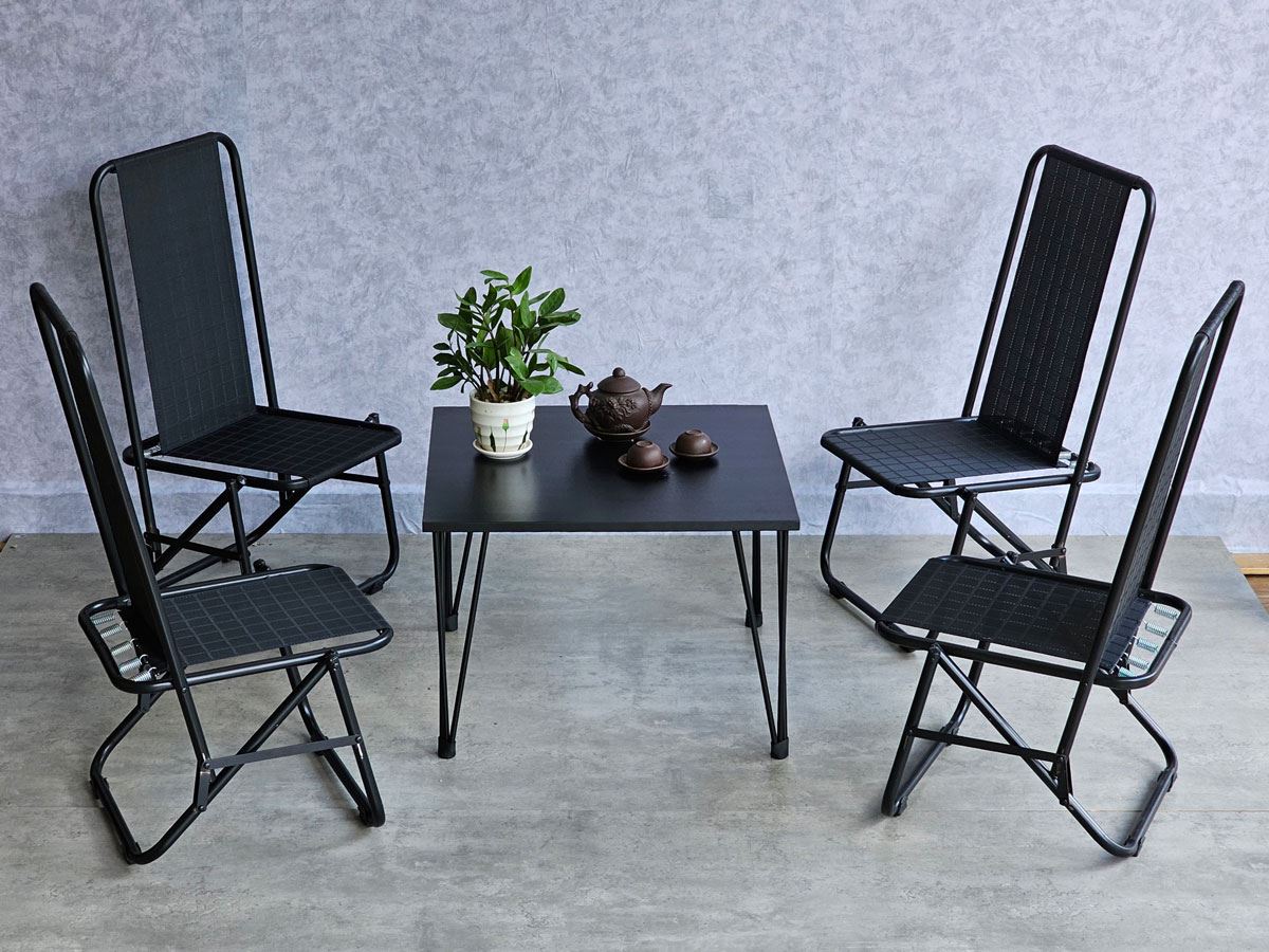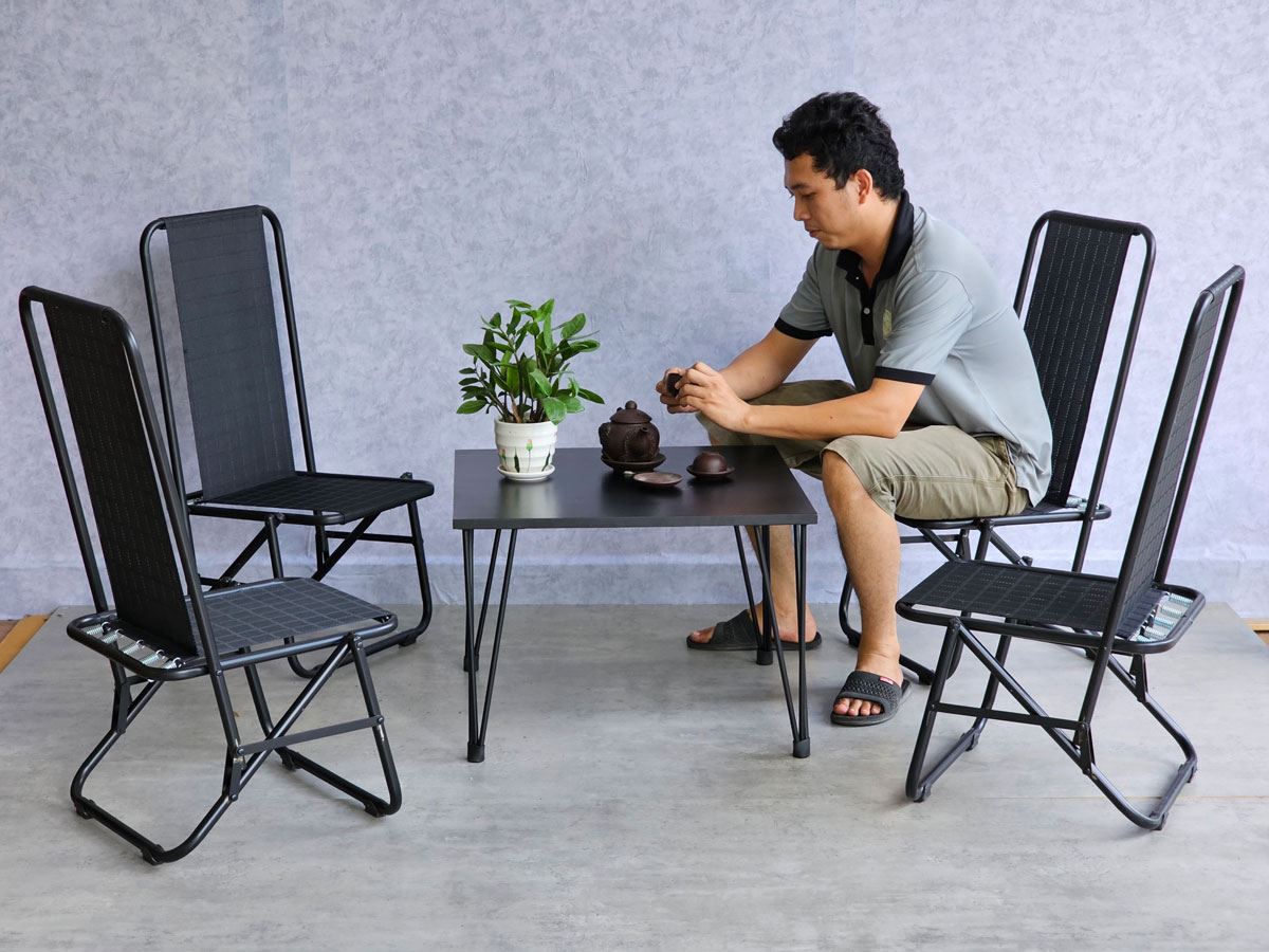Trong combo CBCF291 bao gồm 1 bàn sofa gỗ cao su và 4 ghế lưới xếp gọn.