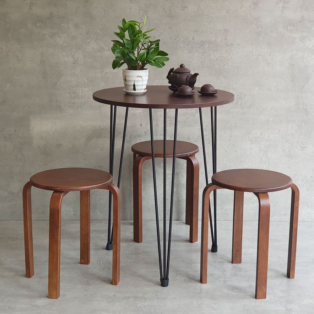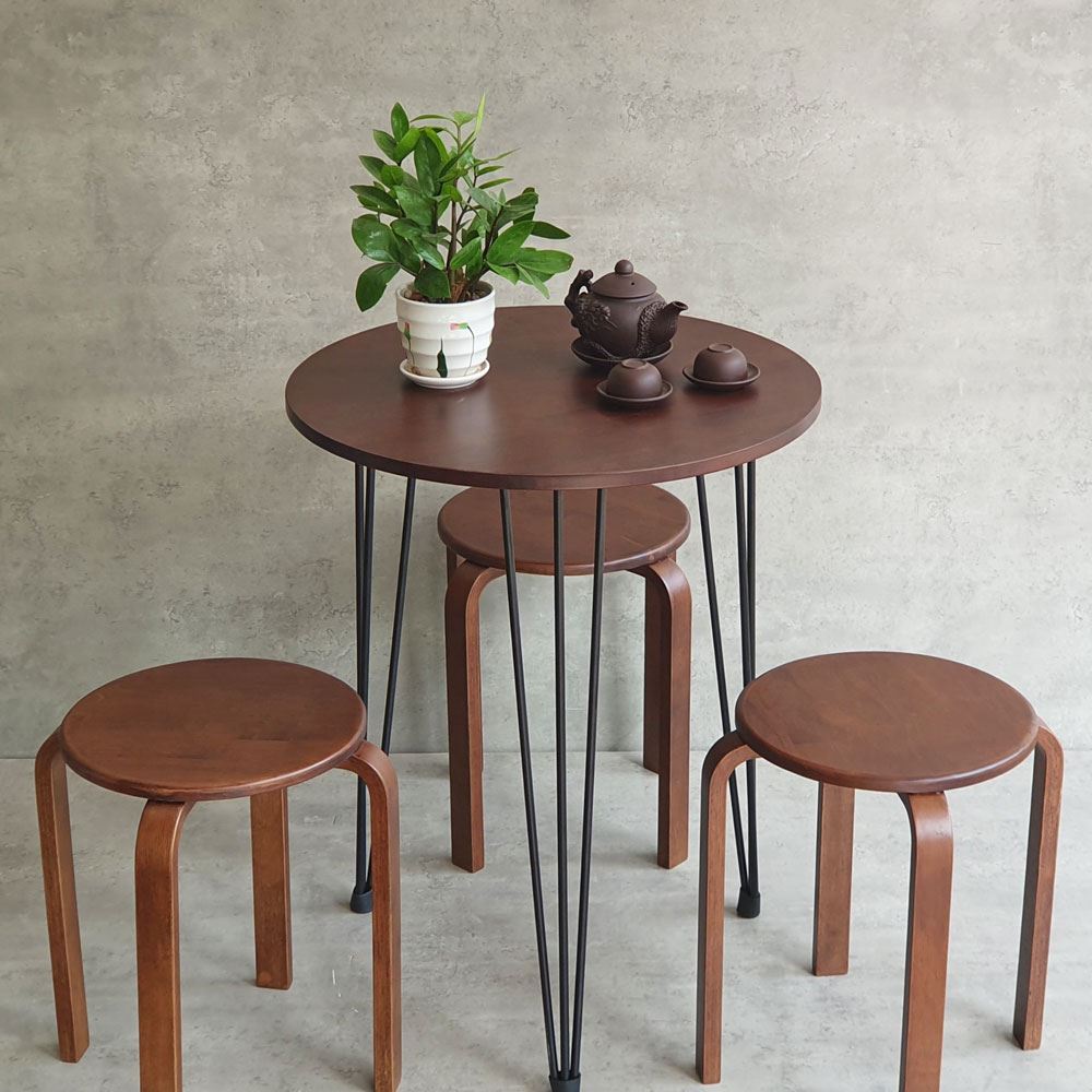 Combo bàn ghế cafe dành cho 3 người ngồi. Trong combo CBCF270 bao gồm 1 bàn cafe tròn và 3 ghế đôn tròn. Quý khách có thể tùy chọn màu mặt bàn và màu ghế.