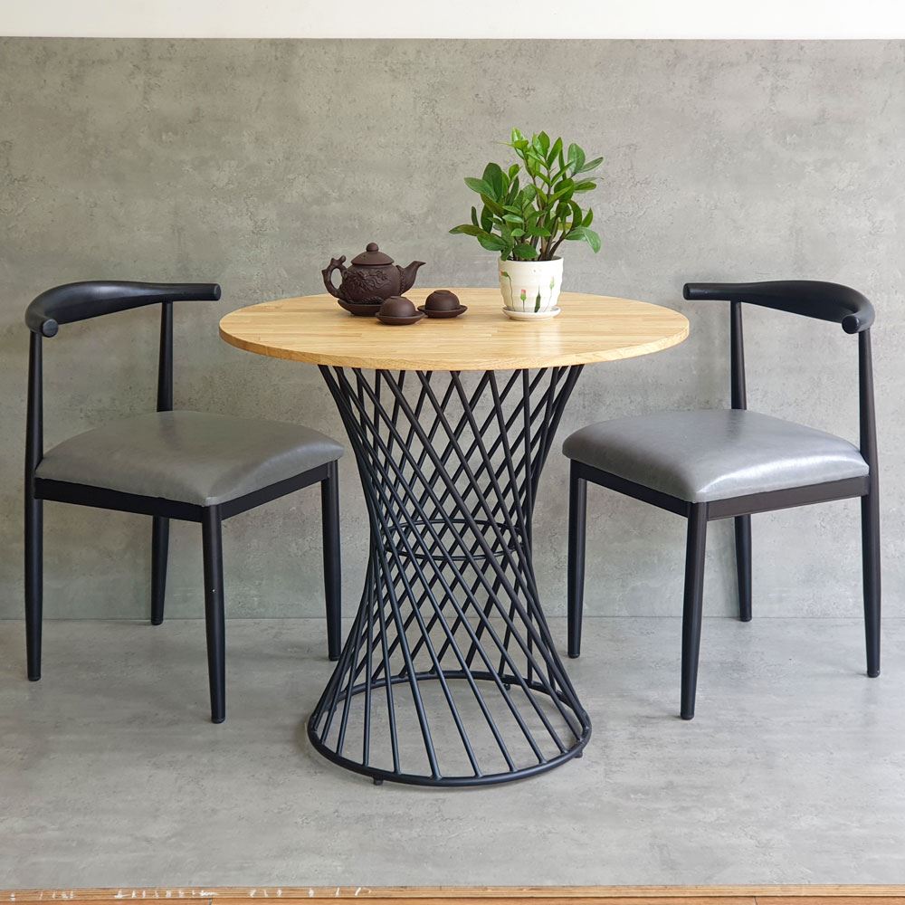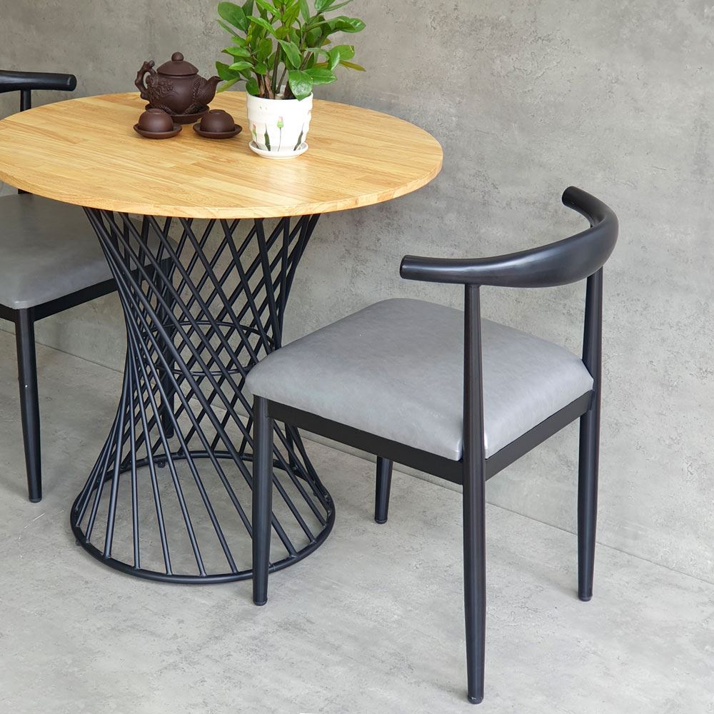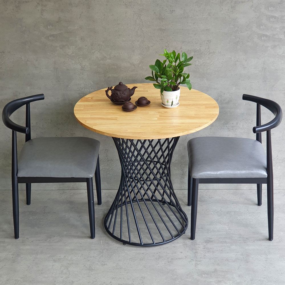 Combo bộ bàn ghế cafe CBCF261 bao gồm 2 ghế cafe + 1 bàn cafe tròn phù hợp cho các không gian quná cafe hoặc nhà hàng, quan ăn đều rất đẹp mắt. Mặt bàn kích thước tròn 80cm rất thoải mái cho 4 người ngồi, kiểu chân sắt trong lạ mắt sử dụng sắt tròn đặc sơn tĩnh điện rất chắc chắn.