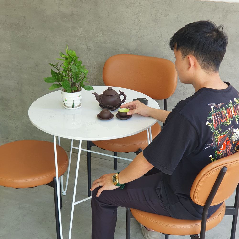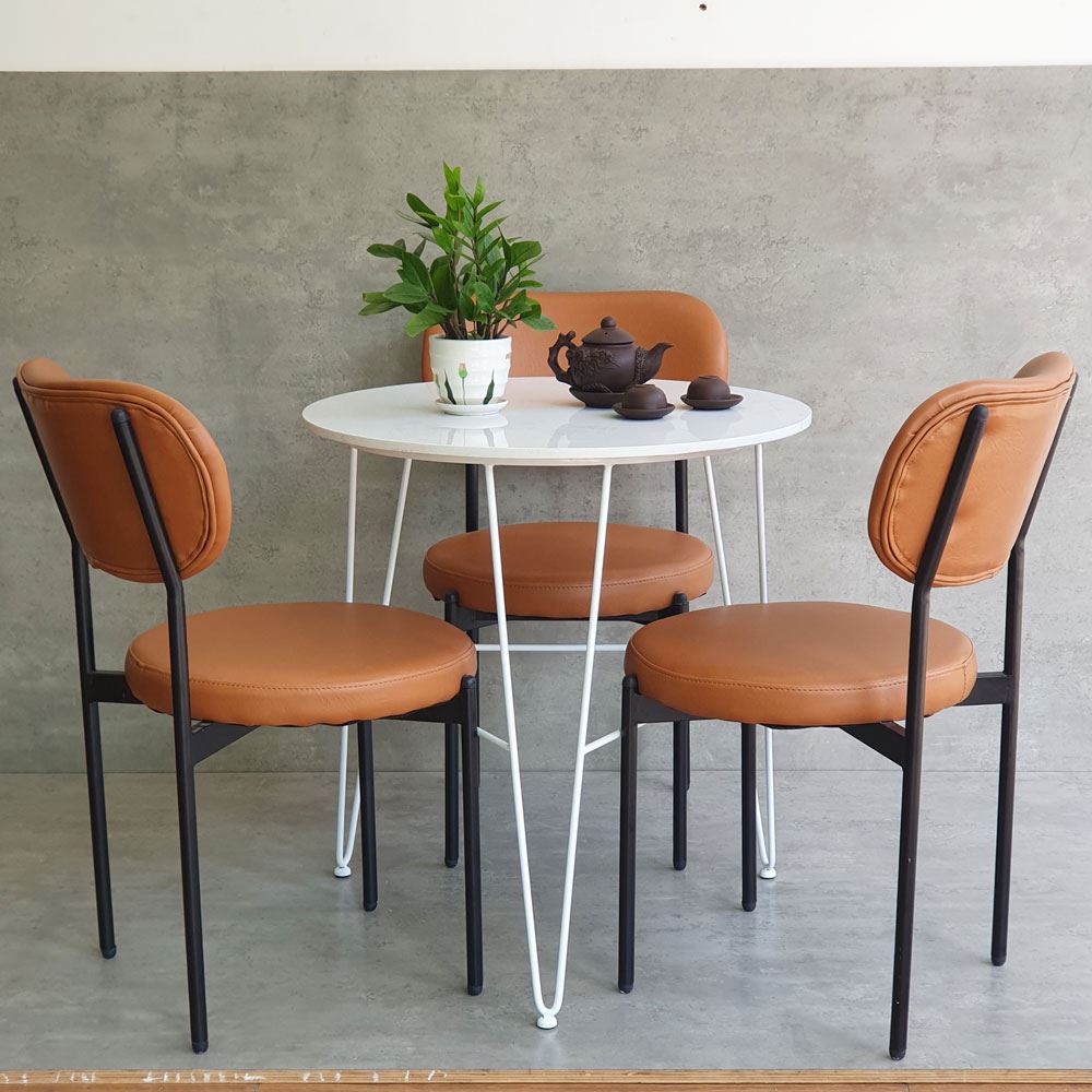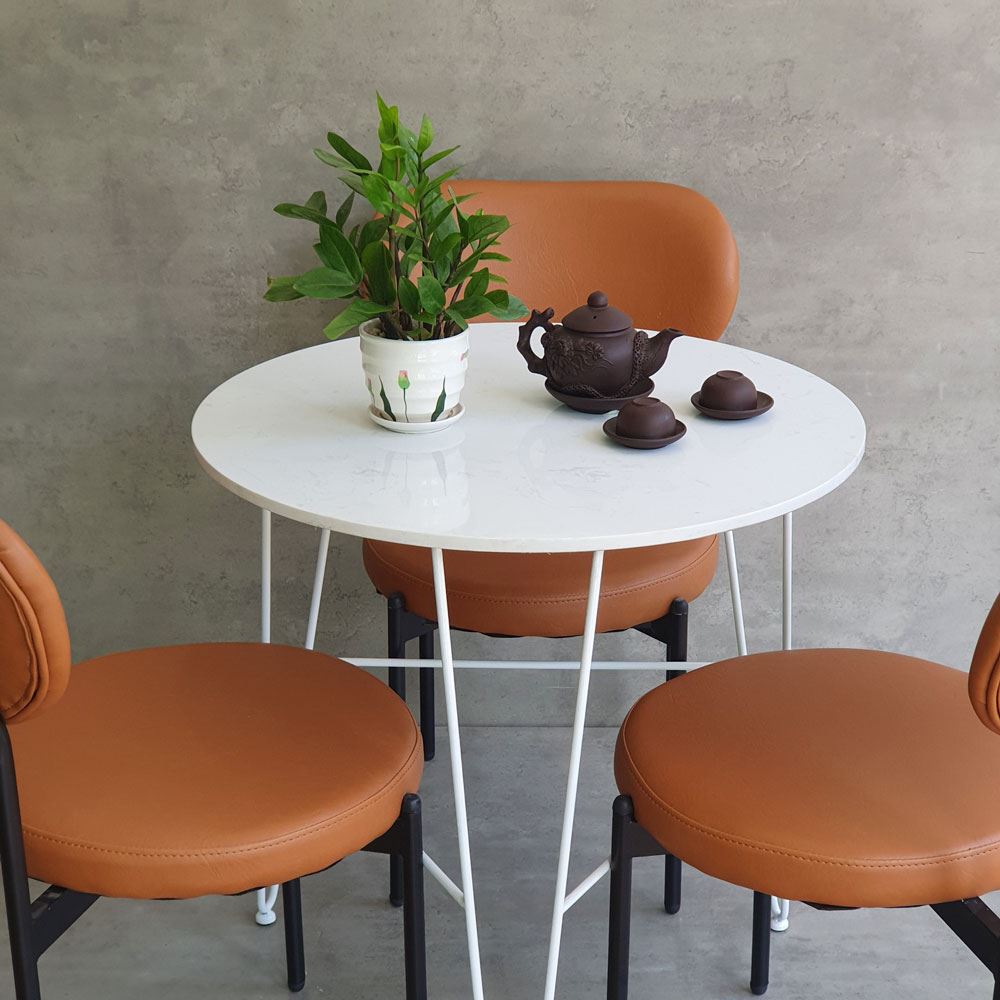 Combo bộ bàn ghế cafe mặt đá tròn 70cm nhỏ gọn. Trong combo CBCF264 bao gồm 1 bàn tròn mặt đá và 3 ghế cafe bọc nệm. Quý khách có thể tùy chọn màu mặt bàn và màu ghế.