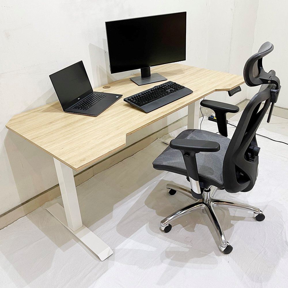 Bộ bàn ghế làm việc Ergonomic với bàn nâng hạ mặt gỗ Plywood vân sồi