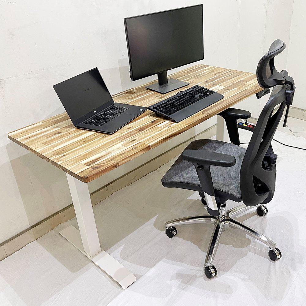 Bộ bàn ghế làm việc Ergonomic với bàn nâng hạ mặt gỗ Tràm