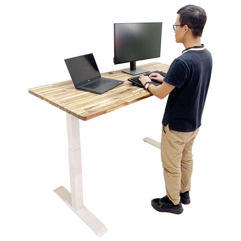 Bàn nâng hạ chiều cao điện mặt bàn gỗ Tràm dày 25mm vân màu đẹp mắt