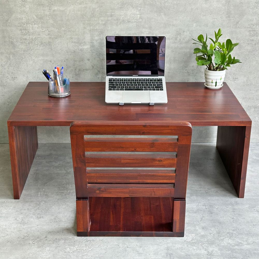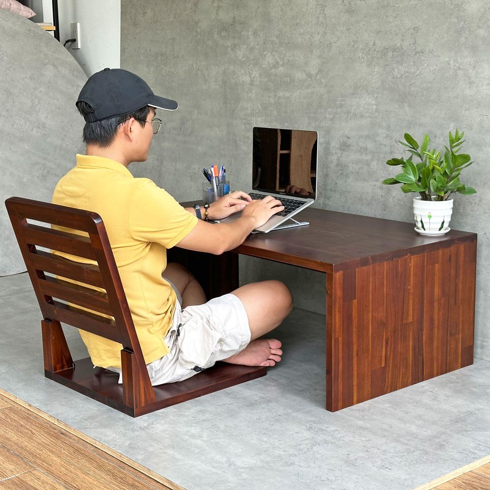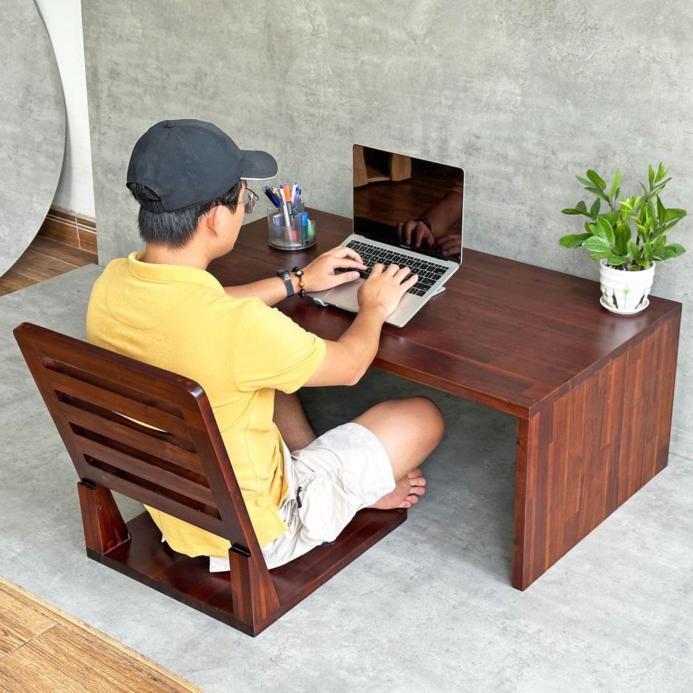 Bộ bàn ghế CB68185 bao gồm 1 bàn gỗ chữ nhật có kích thước 110x60cm và 1 ghế ngồi bệt gỗ. Với đường nét thiết kế đơn giản, theo những hình khối giản dị, không hoa mỹ, cũng không cầu kỳ, mang lại một sự trơn phẳng cho không gian nội thất, giúp tạo cảm giác nhẹ nhàng và gần gũi. Cùng với chất mộc mạc đến từ chất liệu gỗ tự nhiên giúp bạn dễ dàng phối với các món đồ nội thất theo phong cách tối giản Minimalism. Ngoài ra, bộ bàn ghế này cũng là sự lựa chọn phù hợp dành cho các không gian quán trà sữa, quán cafe hoặc quán ăn nhà hàng mang phong cách tương tự.