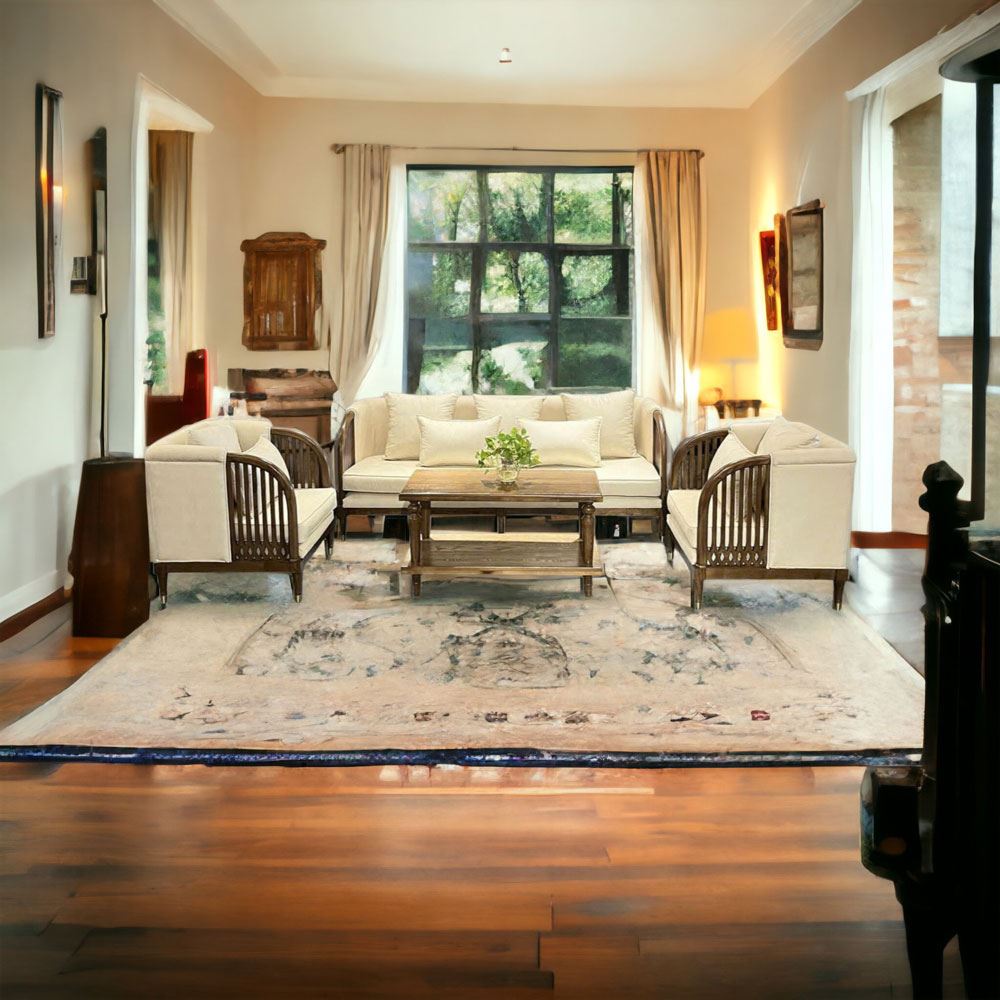 Trong combo CBSF68033 bao gồm 1 bàn chữ nhật gỗ, 1 ghế băng và 2 ghế bành đơn.