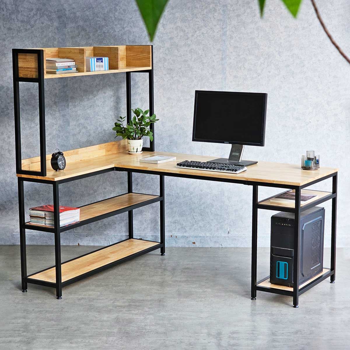 | 1 | Bàn góc L liền kệ 160x120x150cm gỗ cao su khung sắt CD68030 |