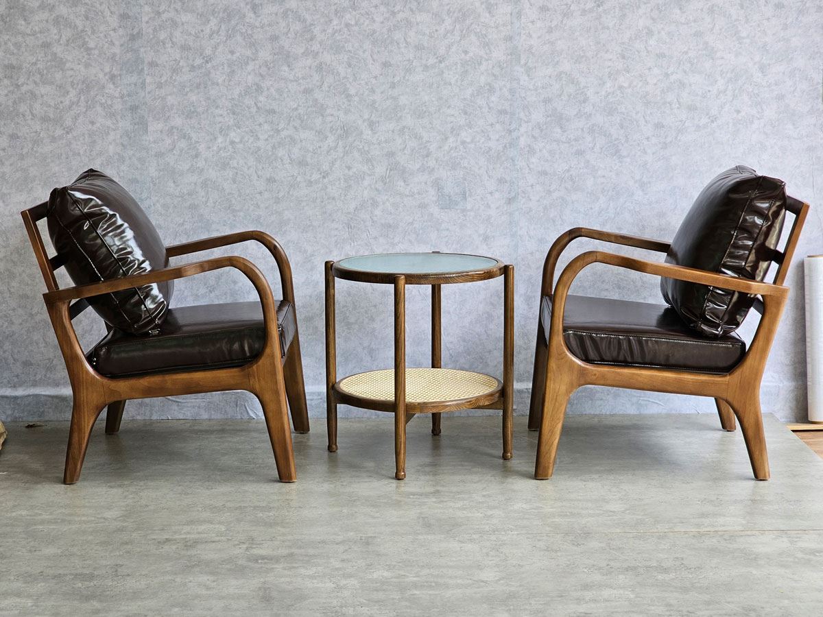 Trong combo CBSF68031 bao gồm 1 bàn tròn mặt kính và 2 ghế bành đơn.