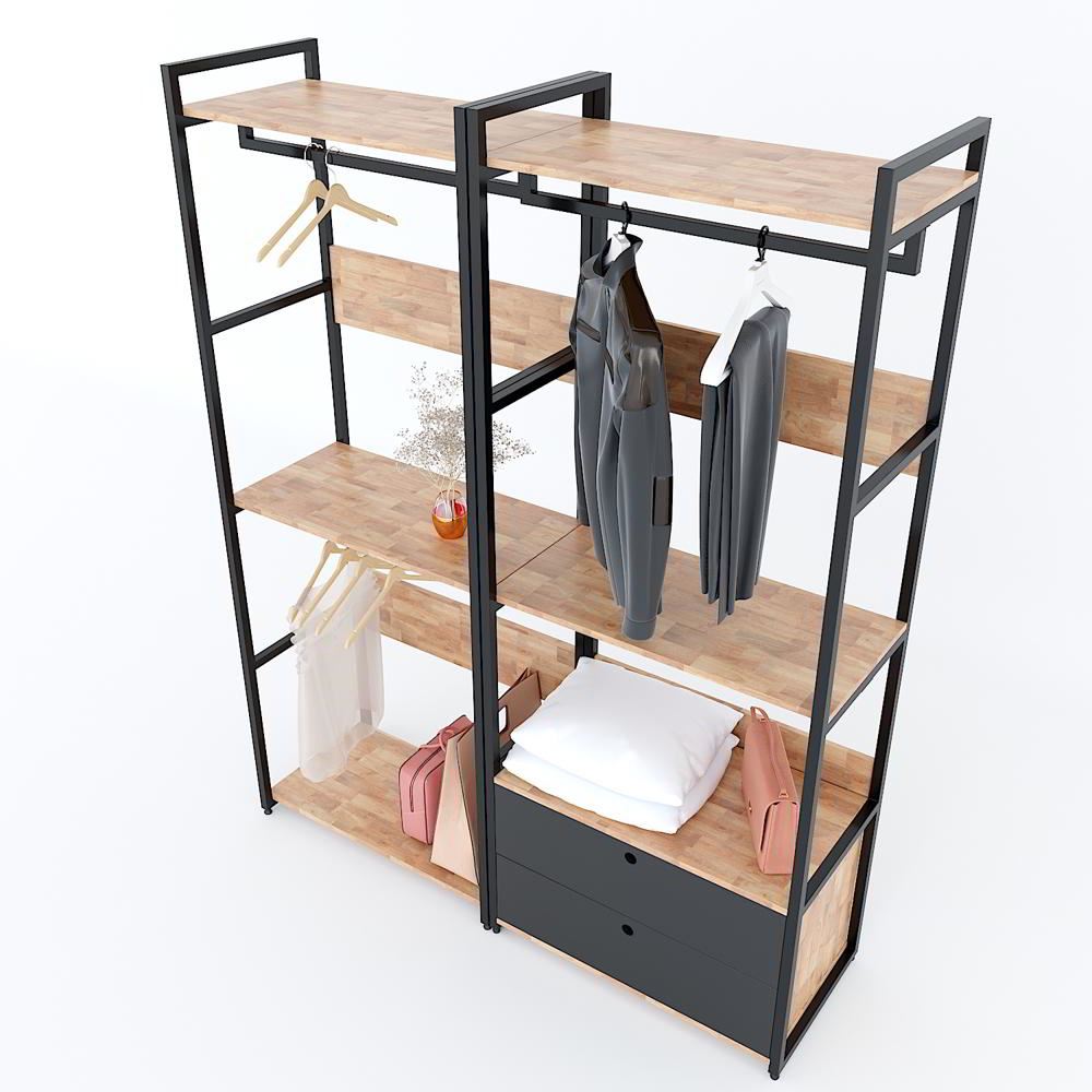 KQA68042 - Kệ quần áo VEGA 3 tầng kết hợp hộc tủ 80x45x200(cm) được thiết kế đơn giản không cửa mở theo phong cách tối giản với chất liệu gỗ cao su tiêu chuẩn AA ưu việt dày 17mm sơn Pu hoàn thiện kết hợp khung sắt hộp gia công sơn tĩnh điện. Thiết kế gồm khung treo đồ đơn giản kết hợp các tầng cùng 2 hộc kéo dưới chân giúp không gian điện tích được sử dụng tối đa. Bạn có thể dễ dàng kết hợp các kệ trong cùng hệ VEGA để tạo thành các kệ lớn hơn, tiện lợi trong việc di chuyển, lắp đặt.