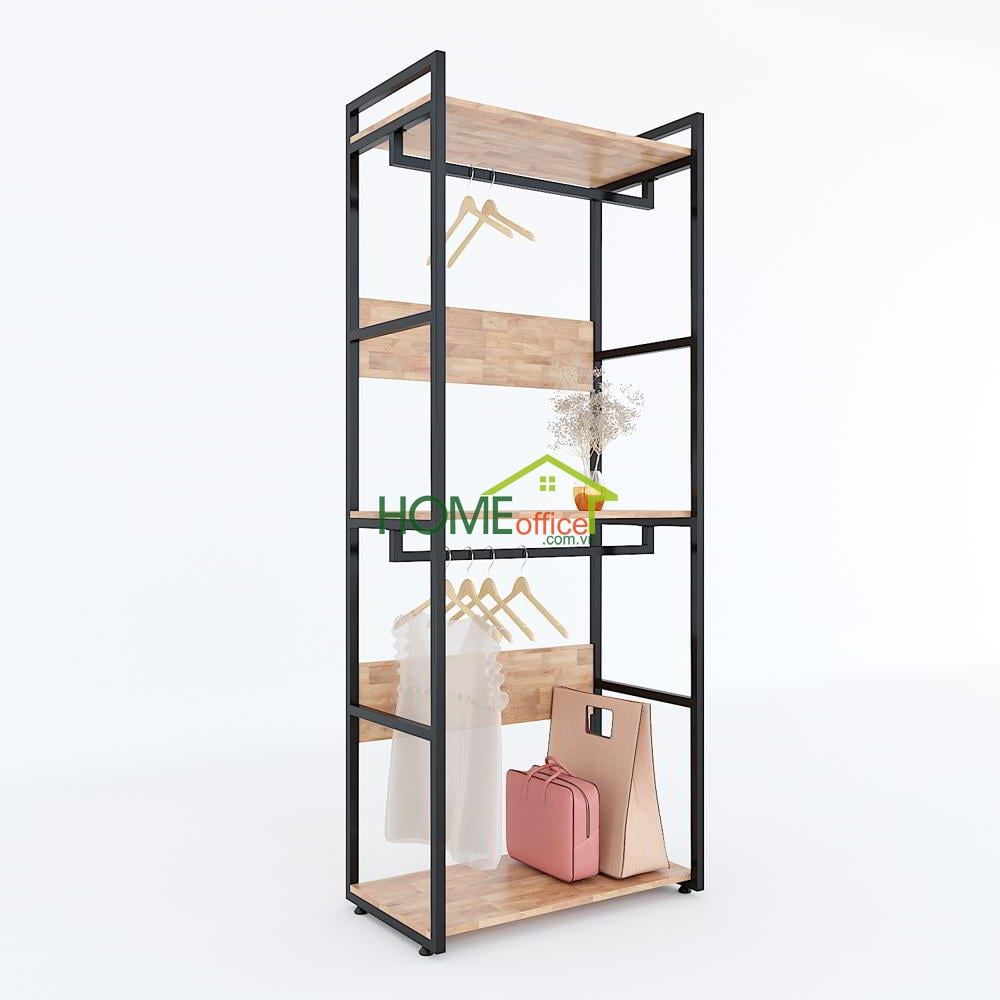 1 Kệ Quần Áo KQA68035 - Kệ quần áo VEGA gỗ khung sắt 3 tầng 80x45x200(cm)