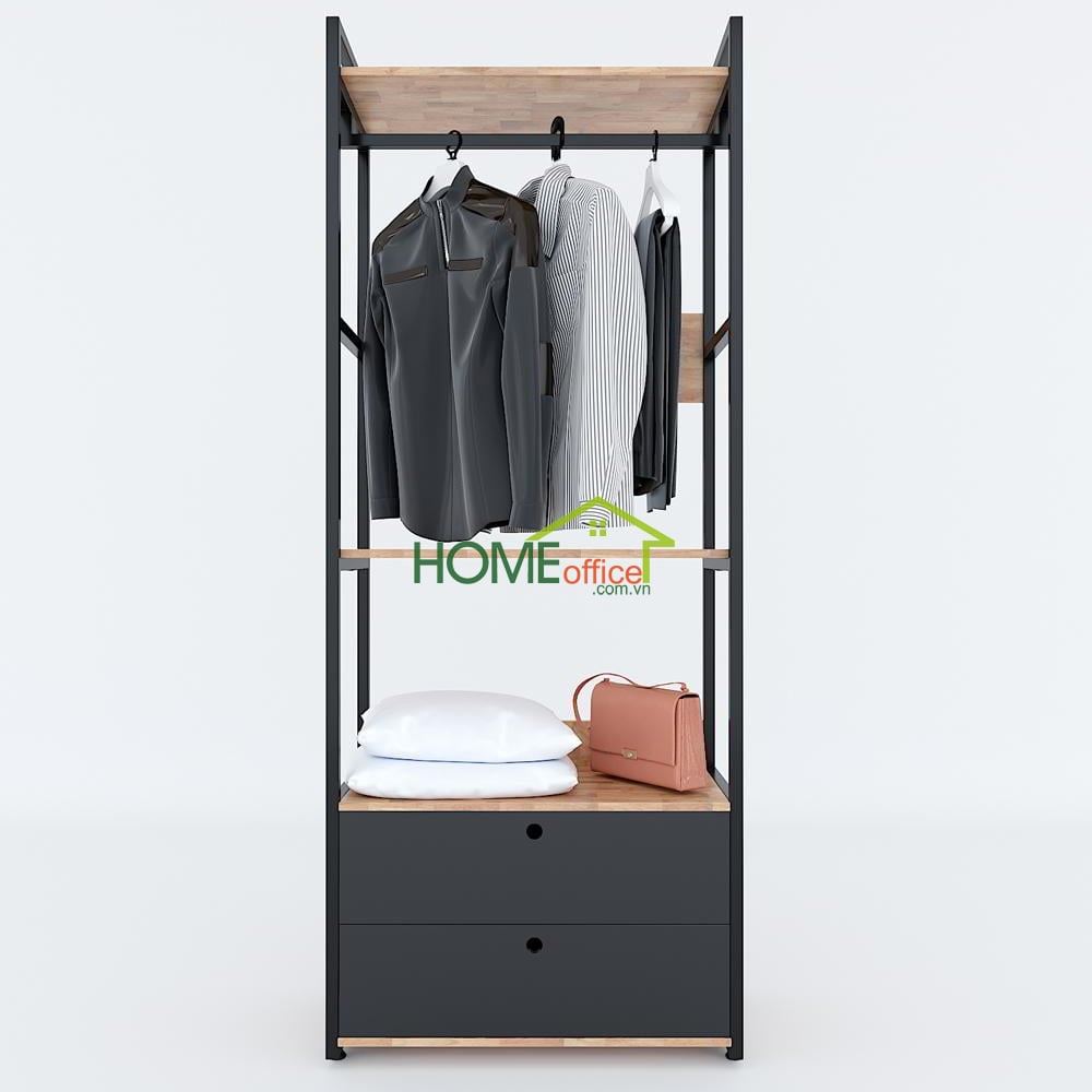 1 Kệ Quần Áo KQA68042 - Kệ quần áo VEGA 3 tầng kết hợp hộc tủ 80x45x200(cm)