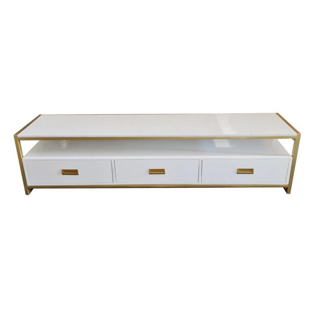 | 4 | Kệ tivi 3 ngăn kéo mặt đá trắng khung màu vàng đồng KTV68063 |