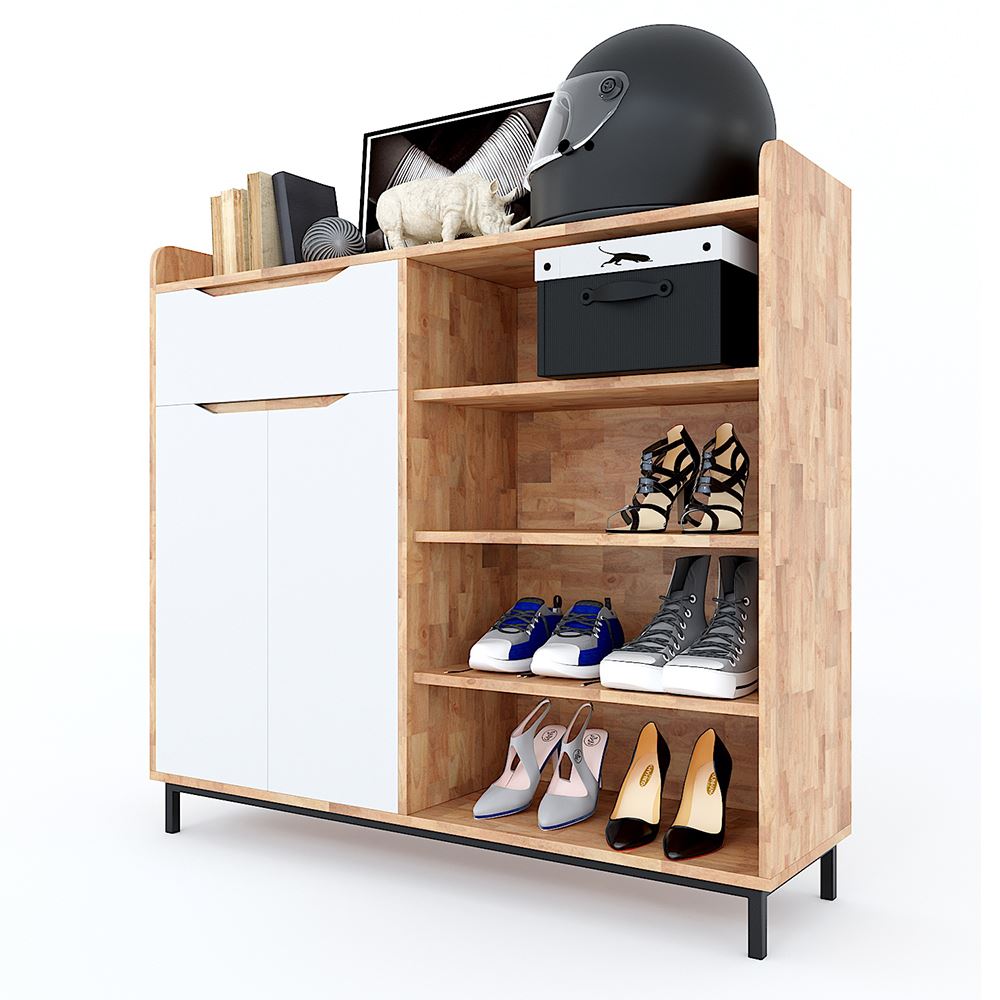 | 2 | Tủ kệ giày 1m2 có ngăn kéo gỗ cao su chân sắt 120x35x110(cm) KG68034 |