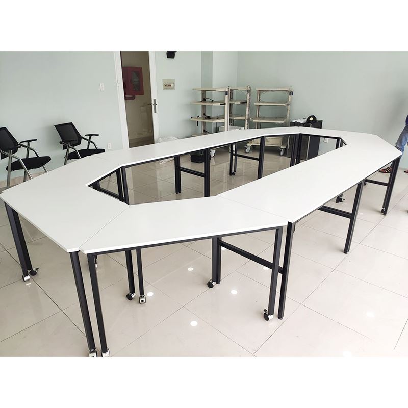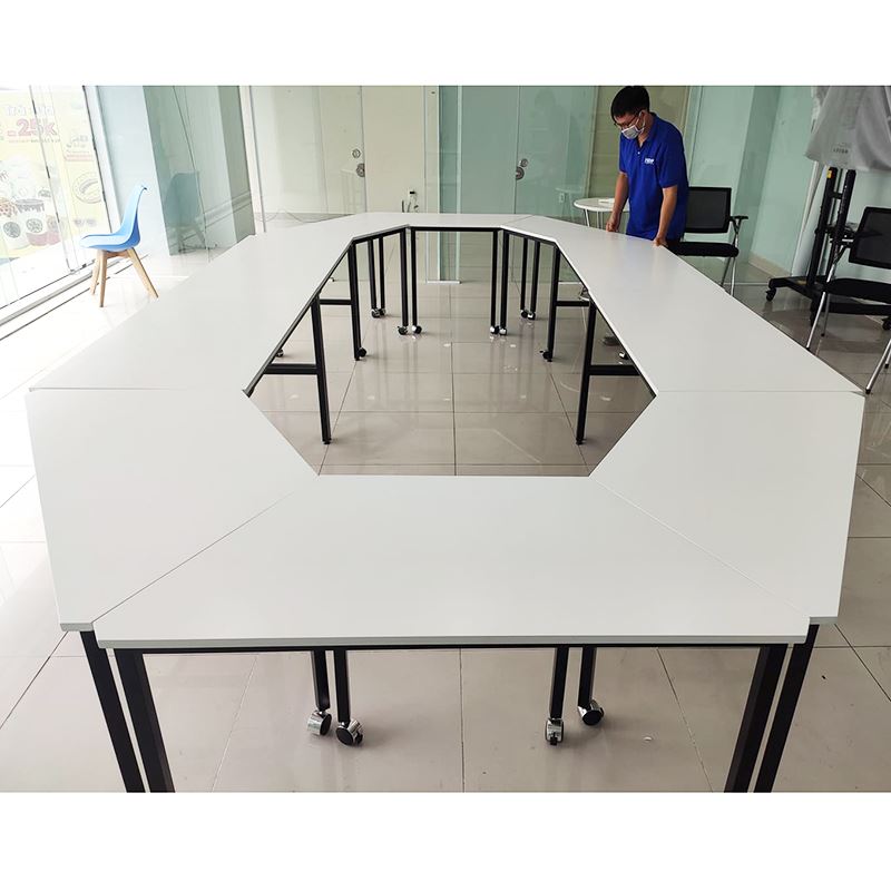 6 Bàn làm việc hình thang hệ Lego gỗ cao su chân lắp ráp HBLG001