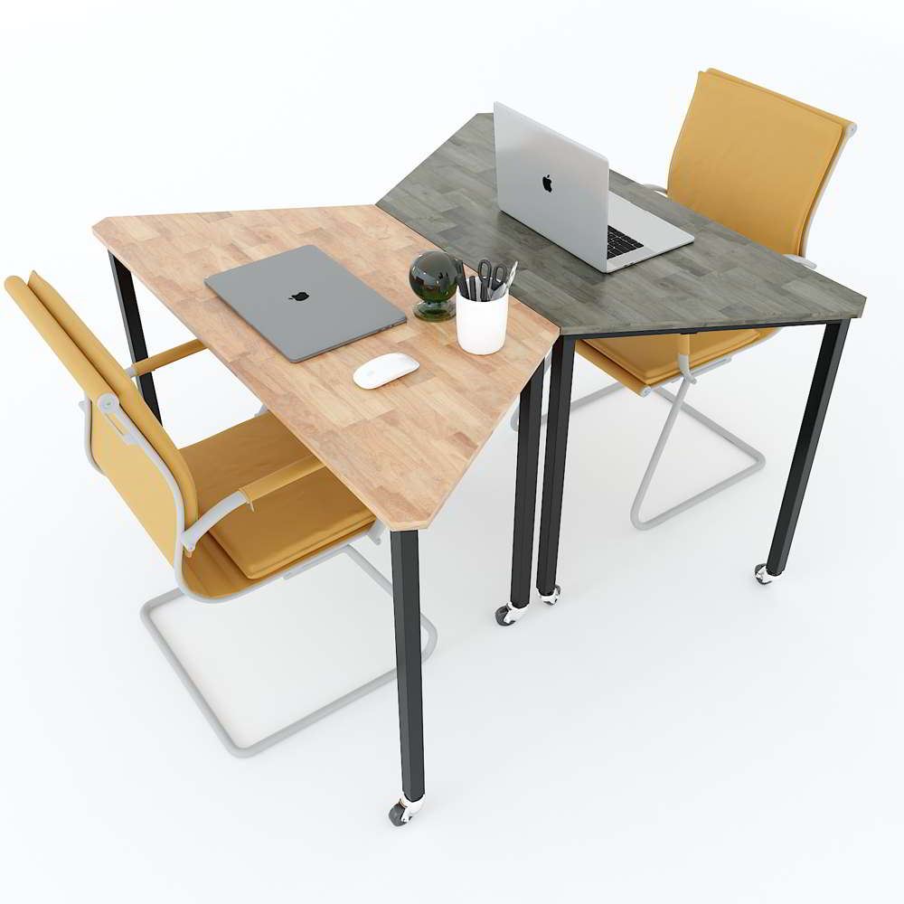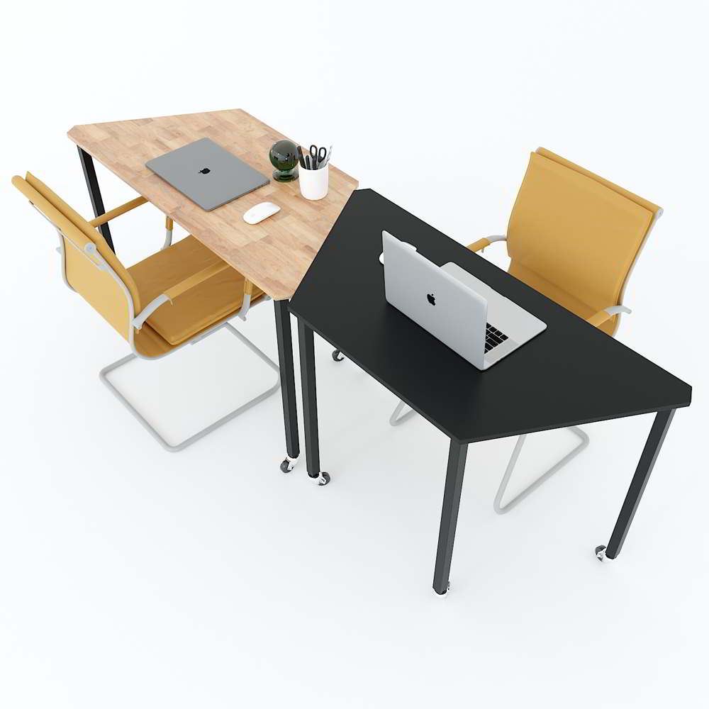 Cụm 2 bàn hệ LEGO HBLG003 với mặt bàn gỗ cao su tự nhiên tiêu chuẩn AA dày 17mm được xử lý và chống thấm nước, đảm bảo độ bền cao kết hợp cùng khung chân sắt cơ cấu lắp ráp sơn tĩnh điện chống rỉ sét. Chân bàn được trang bị bánh xe giúp việc di chuyển, sắp xếp bàn đơn thành các cụm bàn một cách dễ dàng mà không cần tốn nhiều công sức, thời gian.