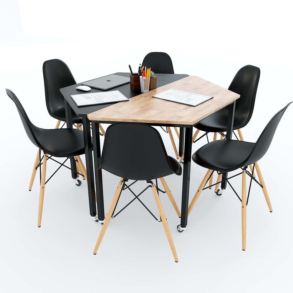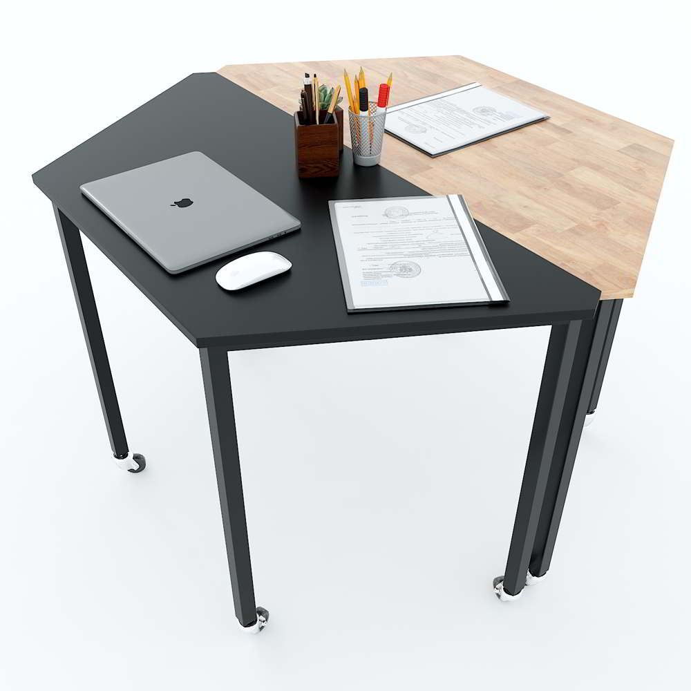Cụm 2 bàn hình thang hệ Lego HBLG012 với mặt bàn gỗ cao su tự nhiên tiêu chuẩn AA dày 17mm được xử lý và chống thấm nước, đảm bảo độ bền cao kết hợp cùng khung chân sắt cơ cấu lắp ráp sơn tĩnh điện chống rỉ sét. Chân bàn được trang bị bánh xe giúp việc di chuyển, sắp xếp bàn đơn thành các cụm bàn một cách dễ dàng mà không cần tốn nhiều công sức, thời gian. Bàn cụm 2 HBLG012 là lựa chọn tuyệt vời cho những không gian vừa và nhỏ giúp bạn tiết kiệm diện tích nhưng vẫn đáp ứng công năng sử dụng.
