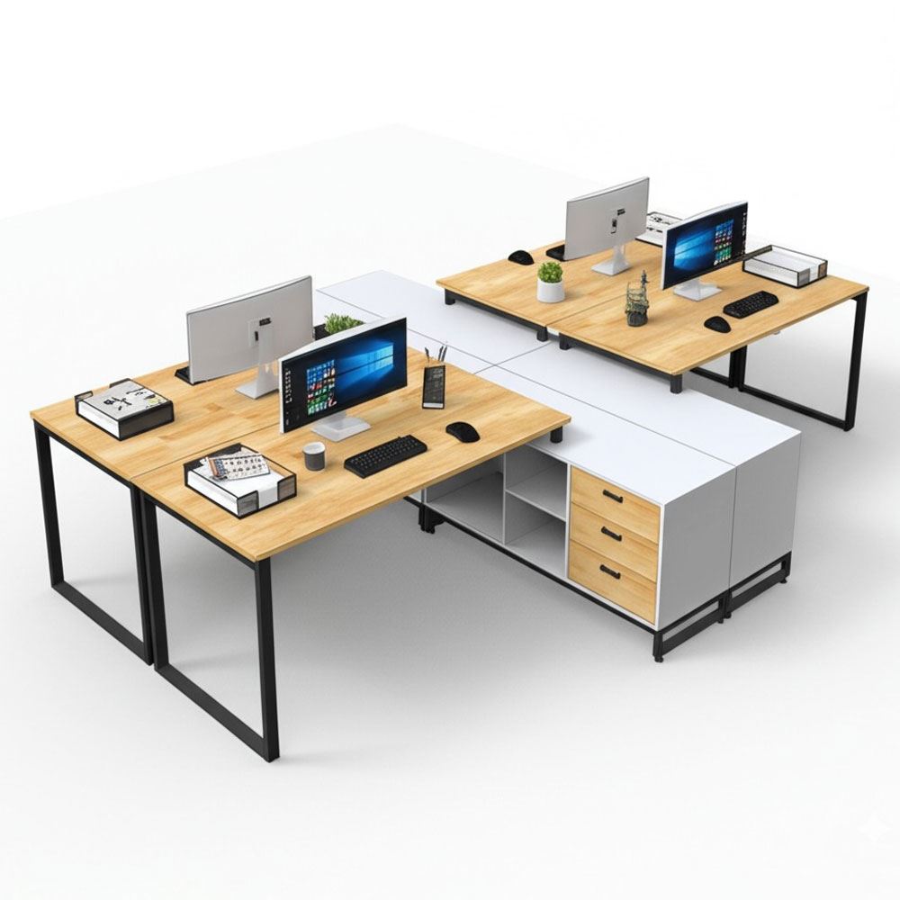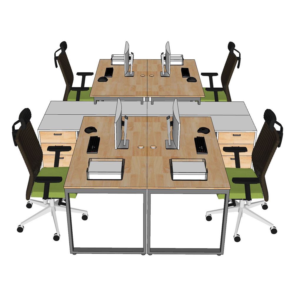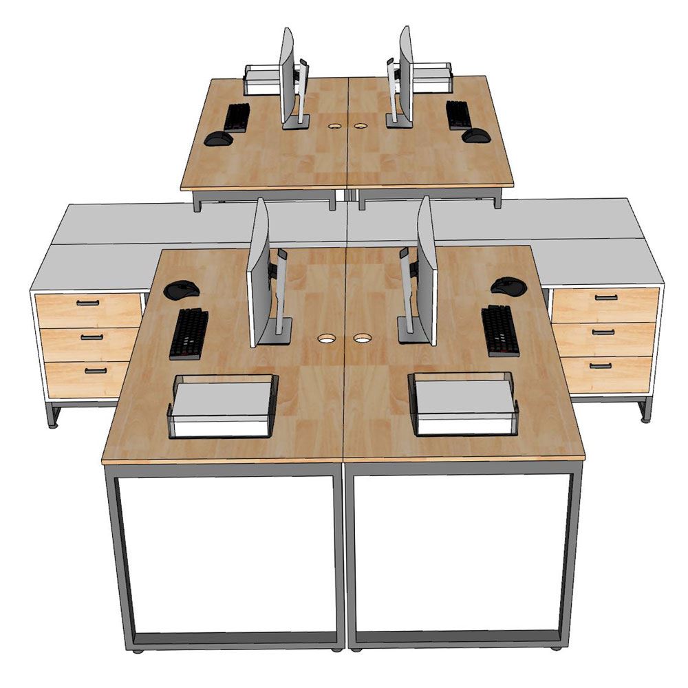 Cụm 4 bàn gác tủ HBRT082 là mẫu bàn ghép bốn từ sản phẩm bàn gác tủ HBRT080. Với kích thước mặt bàn rộng 140x70cm cho mỗi bàn, giúp người sử dụng có nhiều không gian làm việc hơn, để được nhiều đồ hơn. Nếu đang có nhu cầu nâng cấp góc làm việc, có một không gian lưu trữ tài liệu vừa đủ dùng, thì bàn làm việc HBRT082 sẽ là một sự lựa chọn tối ưu dành cho văn phòng của bạn. Bên dưới mặt bàn được trang bị thêm một hệ tủ kệ hồ sơ bằng gỗ, vừa đáp ứng nhu cầu lưu trữ tài liệu và hồ sơ vừa đáp ứng được tính thẩm mỹ cao.