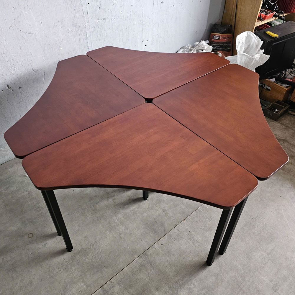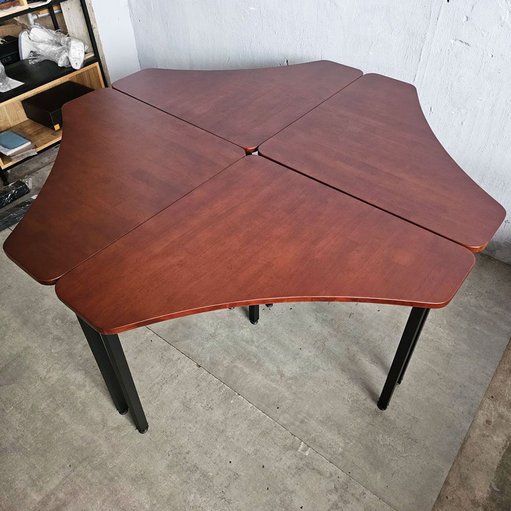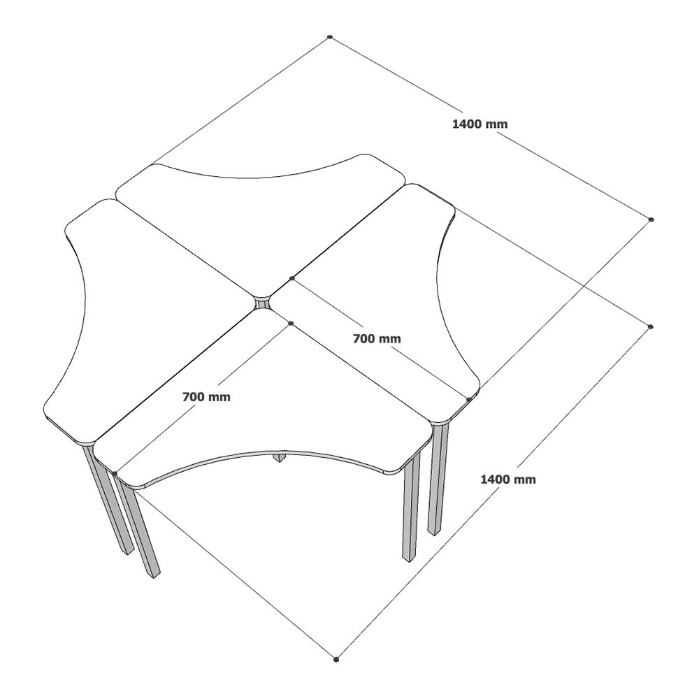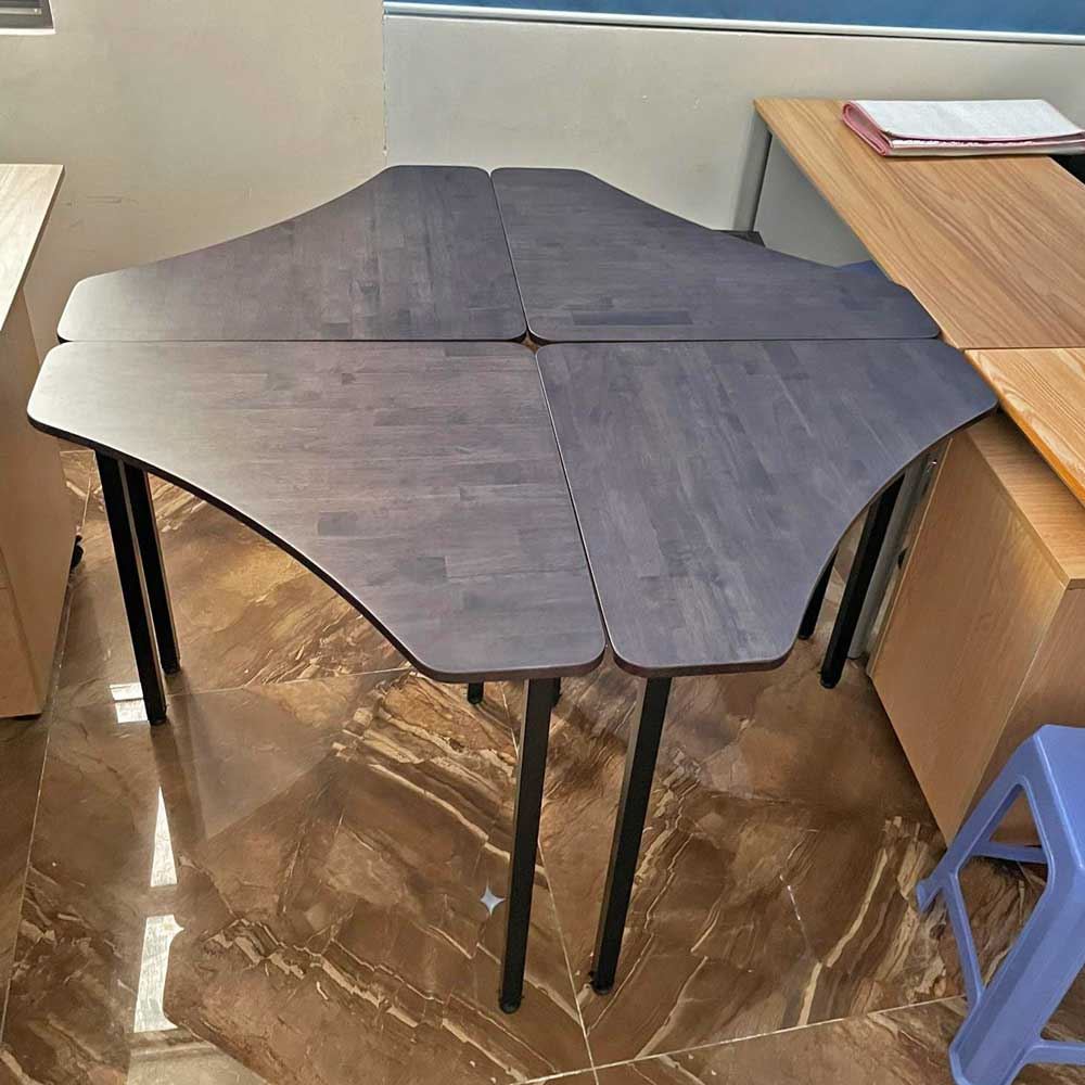 Cụm 4 bàn tam giác HBLG034 là module bàn cụm được ghép từ 4 bàn đơn mặt khuyết có kích thước 70x70x75cm, với mặt bàn gỗ cao su tự nhiên tiêu chuẩn AA dày 17mm được xử lý và chống thấm nước, đảm bảo độ bền cao kết hợp cùng khung chân sắt sơn tĩnh điện cao cấp chống rỉ sét, đảm bảo độ bền cao với thời gian sử dụng lâu dài.