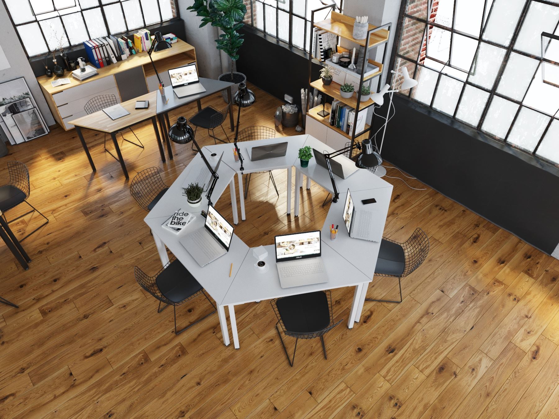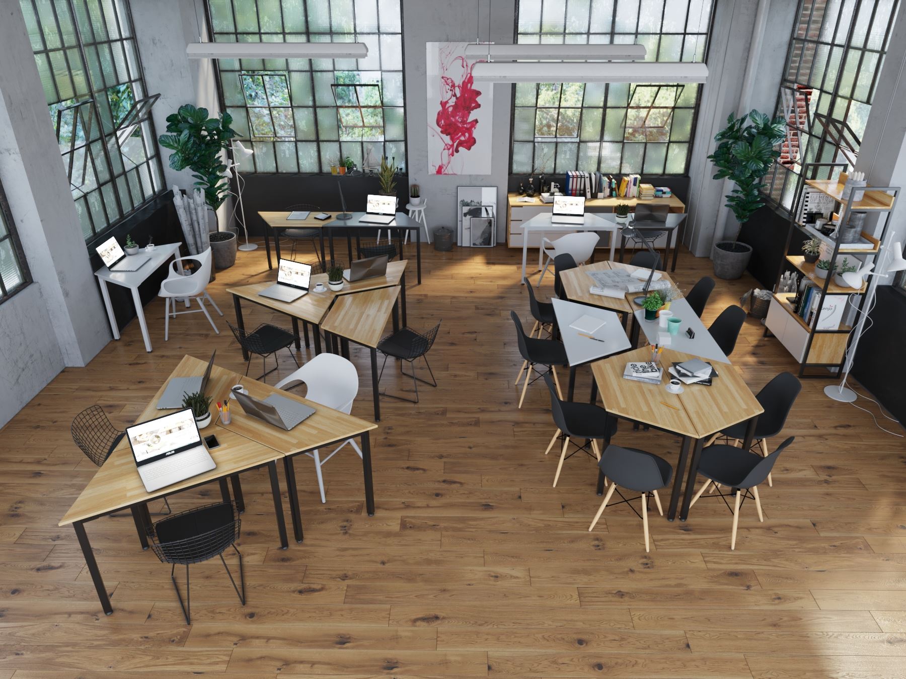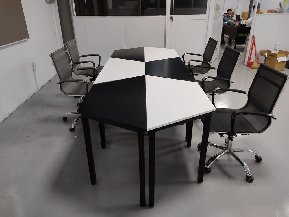 MD68005 - Modul bàn làm việc hình thang 6 người - Kiểu thiết kế modul linh hoạt với bàn làm việc hình thang tại HomeOffice. Với sự độc đáo và linh hoạt trong hình dáng bàn, bạn có thể đơn giản hóa việc thay đổi kết cấu phòng làm việc với một chút kết hợp nhỏ giữa các bàn với nhau.
