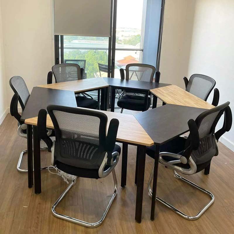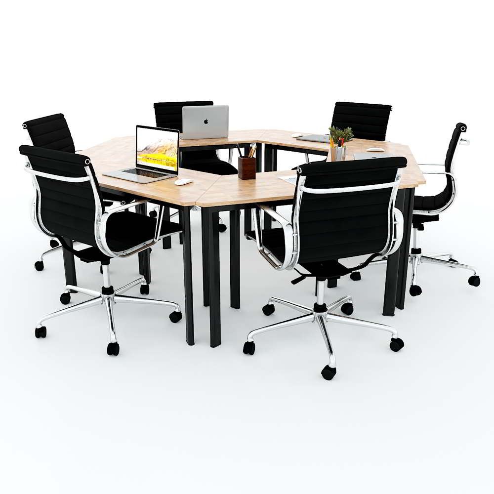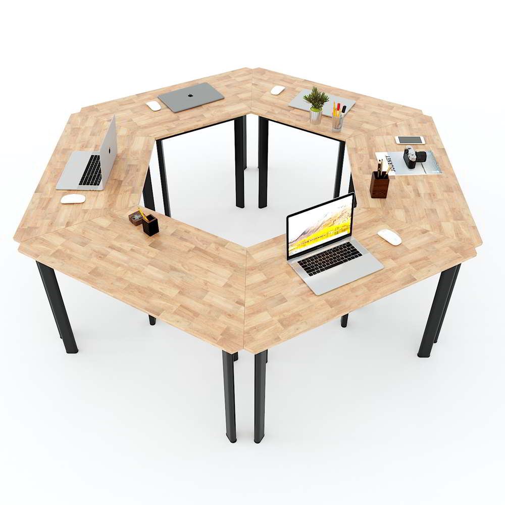Module Bàn Cụm 6 hệ Lego HBLG022 với mặt bàn gỗ cao su tự nhiên tiêu chuẩn AA dày 17mm được xử lý và chống thấm nước, đảm bảo độ bền cao kết hợp cùng khung chân sắt sơn tĩnh điện cao cấp chống rỉ sét, đảm bảo độ bền cao với thời gian sử dụng lâu dài. Mặt bàn thiết kế hình thang với kích thước được tính toán kỹ càng có thể dễ dàng sắp xếp bàn đơn thành các cụm bàn tùy theo quy mô và mục đích sử dụng. Nhờ tính linh hoạt cao mà cụm bàn văn phòng hệ Lego ngày càng được các doanh nghiệp, trường học ưa chuộng và sử dụng rộng rãi.