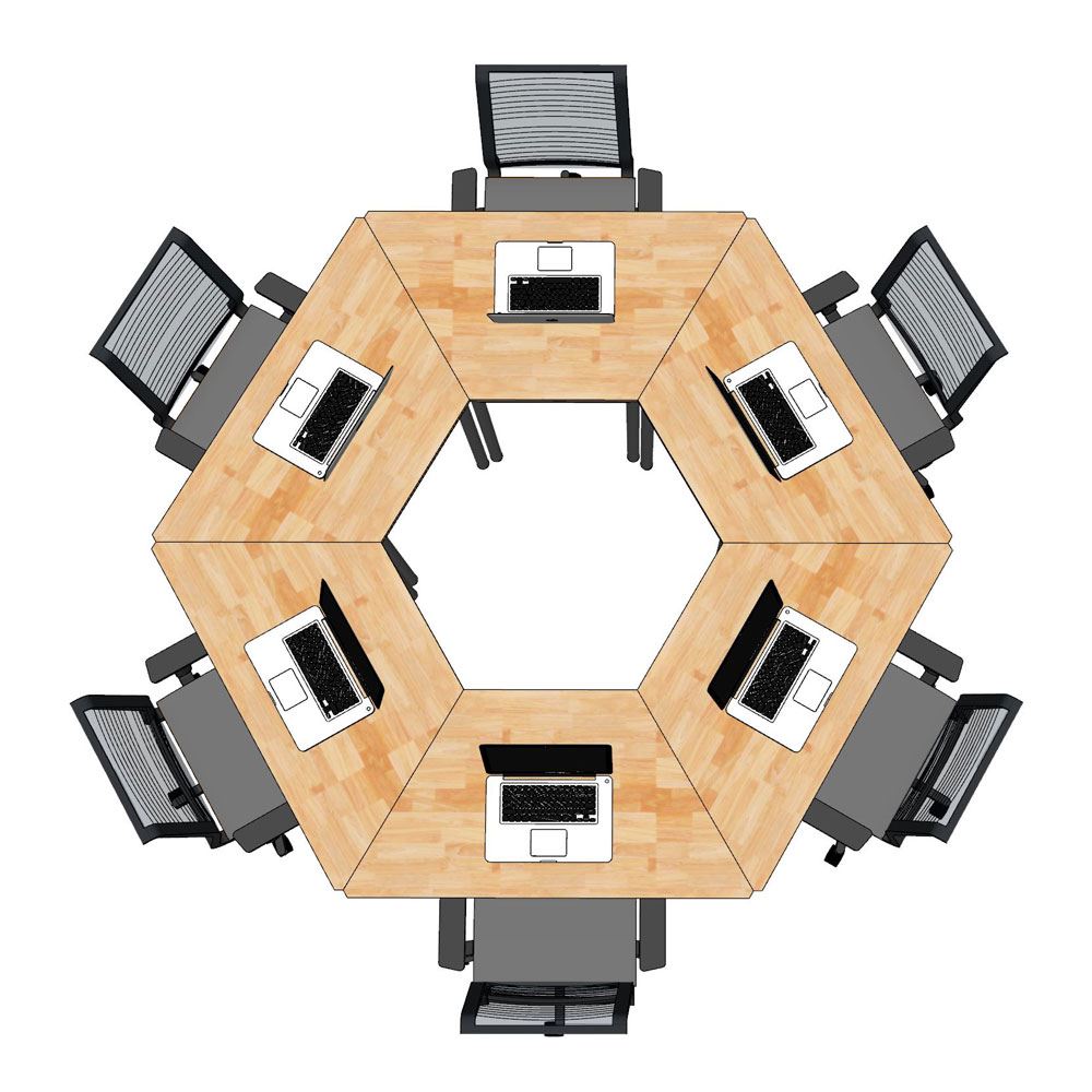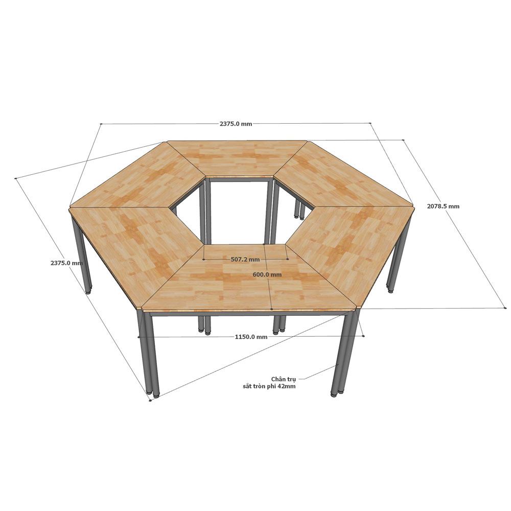 Cụm Bàn 6 chỗ ngồi HBOM012 với mặt bàn gỗ cao su tự nhiên tiêu chuẩn AA dày 17mm được xử lý và chống thấm nước, đảm bảo độ bền cao kết hợp cùng khung chân sắt sơn tĩnh điện cao cấp chống rỉ sét, đảm bảo độ bền cao với thời gian sử dụng lâu dài. Mặt bàn thiết kế hình thang với kích thước được tính toán kỹ càng có thể dễ dàng sắp xếp bàn đơn thành các cụm bàn tùy theo quy mô và mục đích sử dụng. Nhờ tính linh hoạt cao mà cụm bàn văn phòng lắp ghép ngày càng được các doanh nghiệp, trường học ưa chuộng và sử dụng rộng rãi.