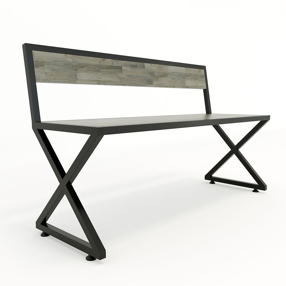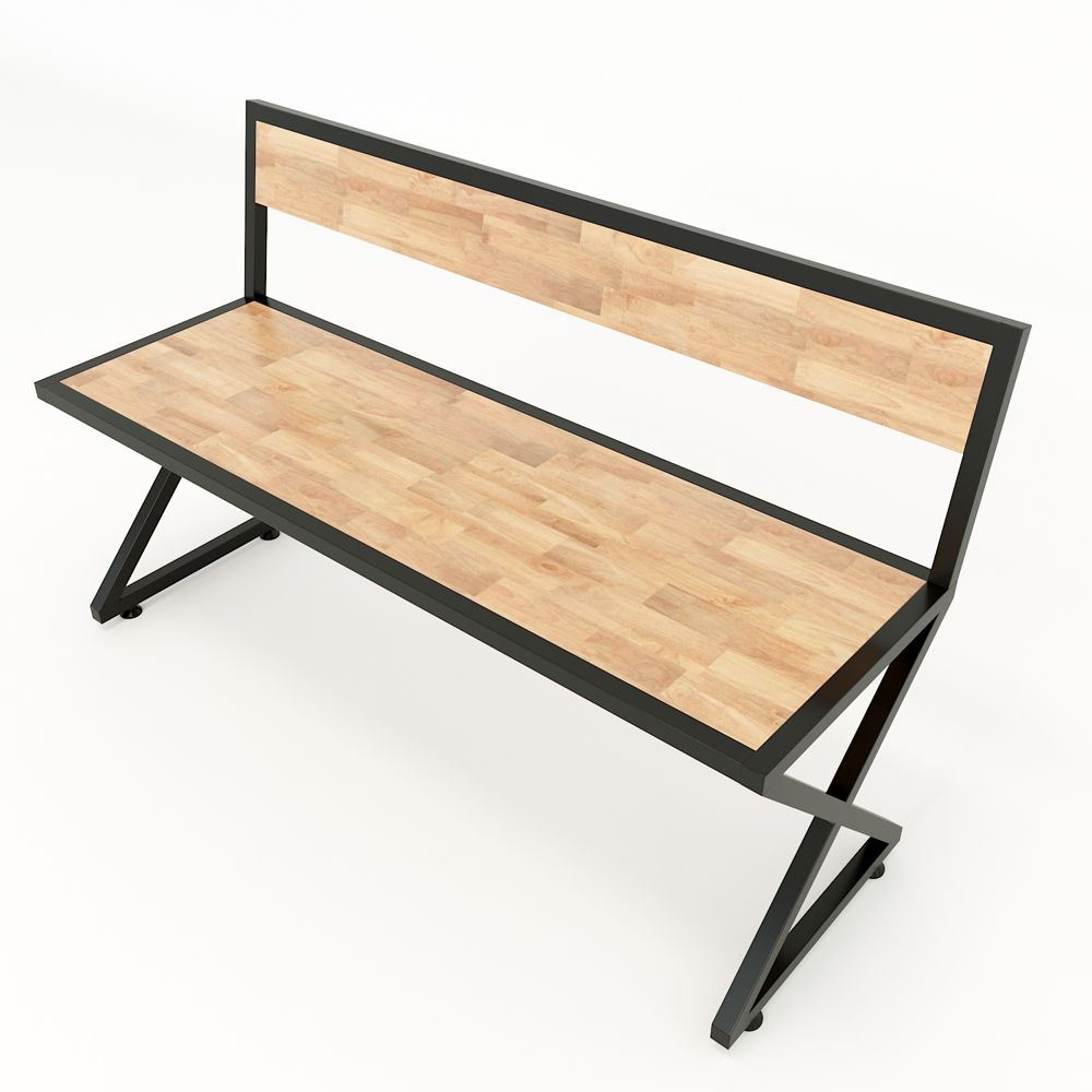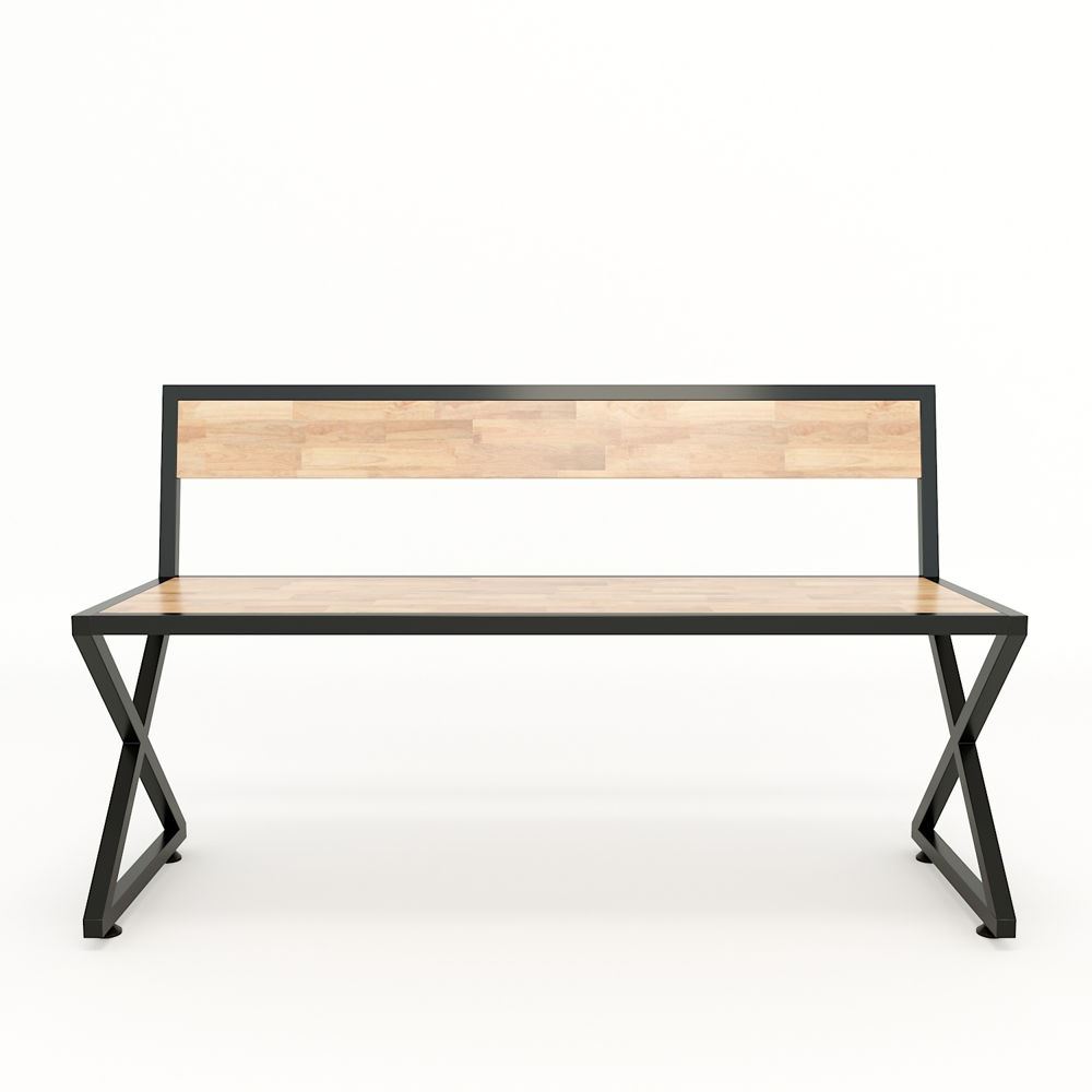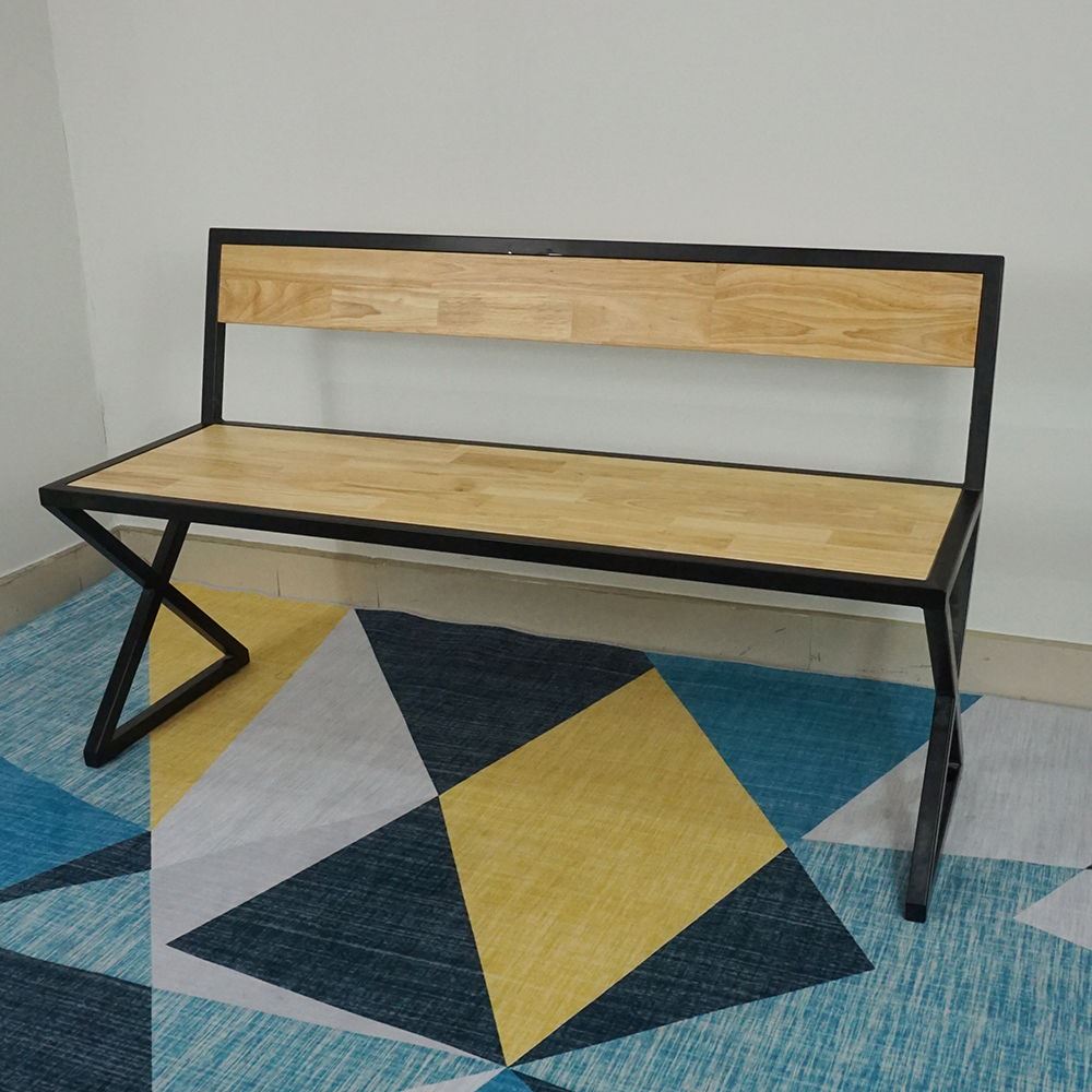 Ghế bằng dài chân sắt chữ X gỗ cao su có tựa lưng GBD001
