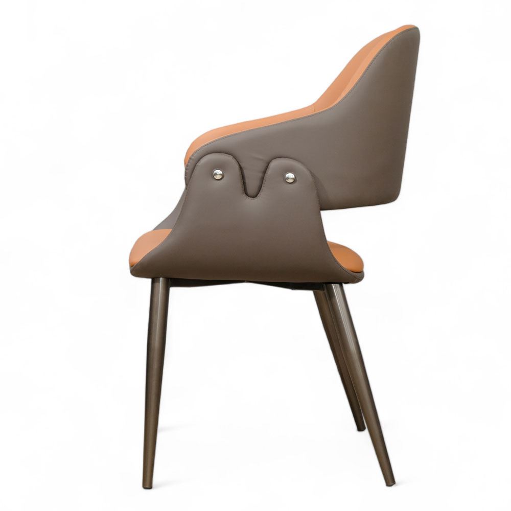 Ghế được bọc da simili cao cấp, mềm mại và mịn màng, mang đến cảm giác êm ái khi ngồi. Chất liệu da simili dễ dàng lau chùi và bảo dưỡng, giúp bạn luôn giữ cho ghế được sạch sẽ và sáng bóng. Khung chân ghế được làm từ thép sơn tĩnh điện, có độ bền cao và khả năng chịu lực tốt. Thiết kế chân ghế vuốt côn đẹp mắt, tạo sự thanh thoát và mềm mại cho tổng thể sản phẩm.