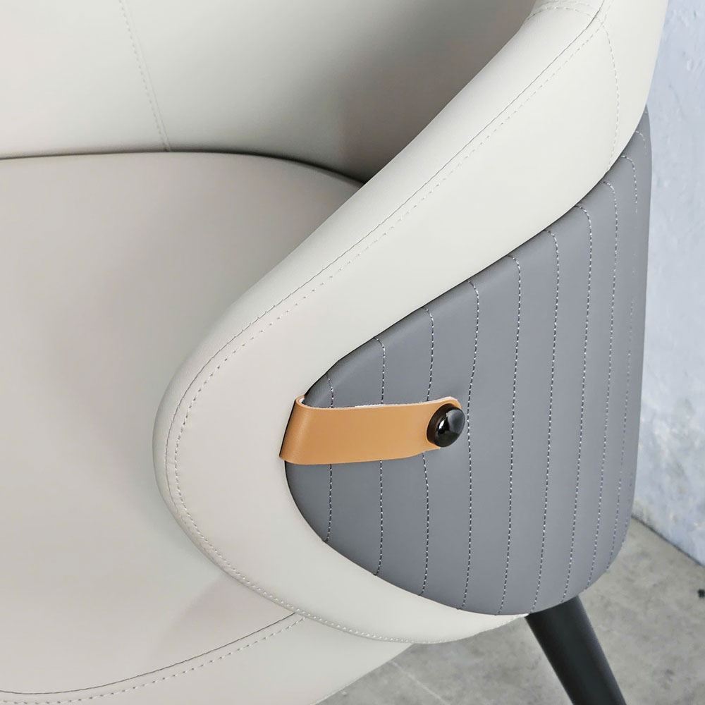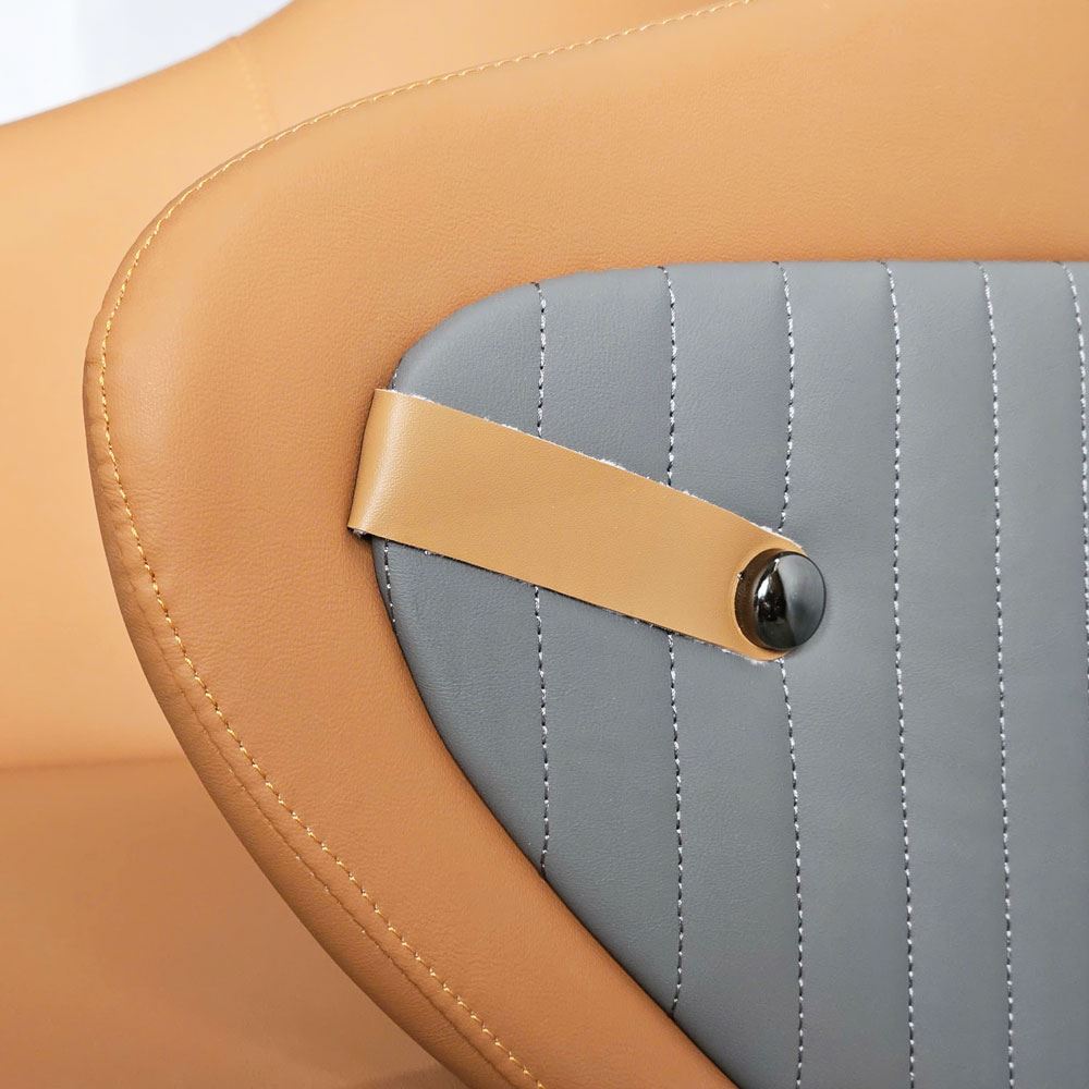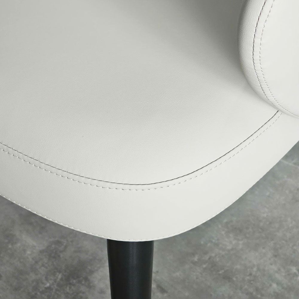 Phần yên ghế được làm bằng chất liệu nệm mút bọc da PU cao cấp, mang đến cảm giác êm ái và dễ chịu khi ngồi. Da PU cao cấp có độ đàn hồi tốt, khả năng chống thấm nước và chống bám bụi hiệu quả, giúp dễ dàng vệ sinh và bảo quản. Khung ghế được làm từ thép carbon chắc chắn, chống gỉ sét, đảm bảo độ bền bỉ theo thời gian. Bên dưới mỗi chân ghế được trang bị nút nhựa đen đồng bộ có tác dụng giảm tiếng ồn khi di chuyển ghế cũng như tránh gây trầy xước mặt sàn.