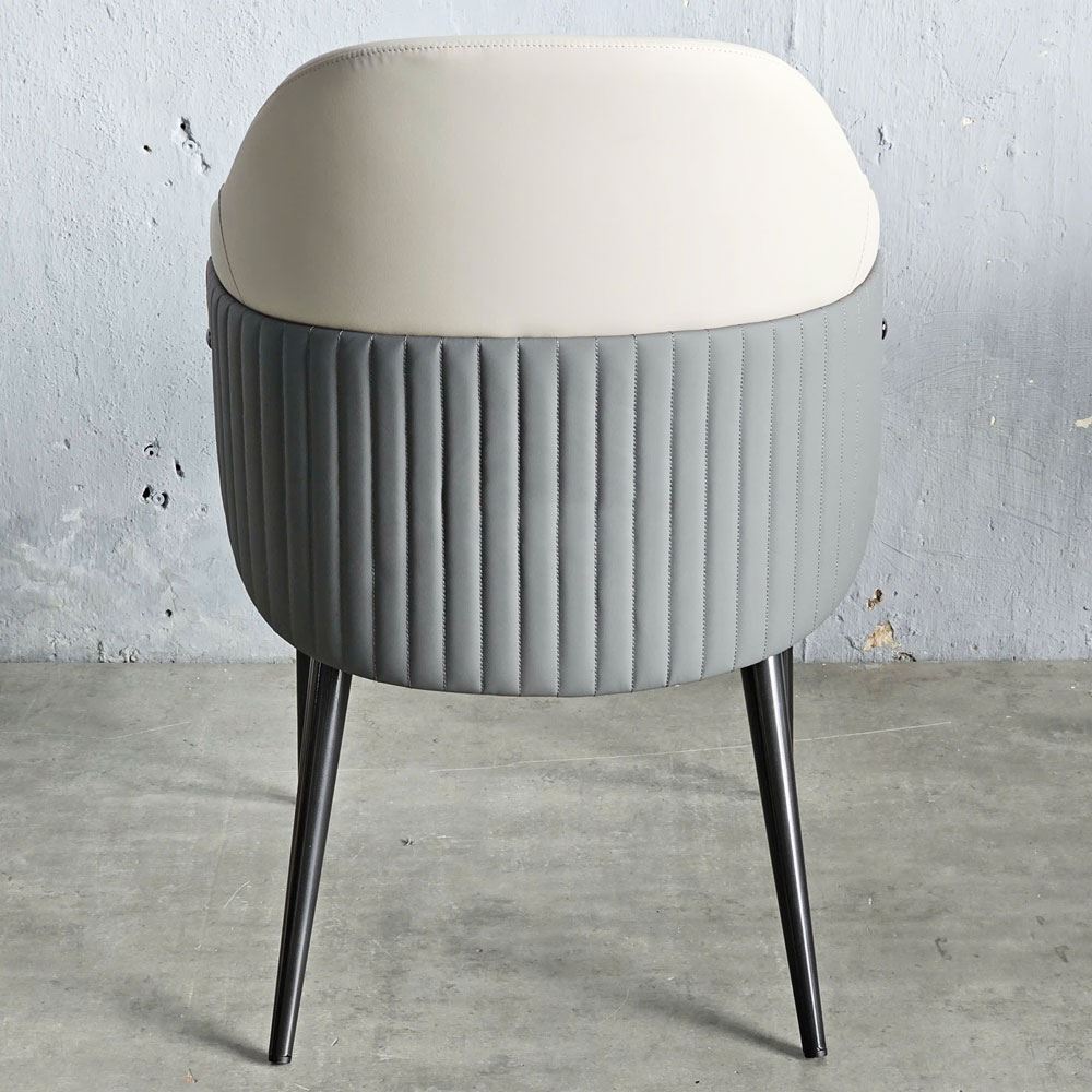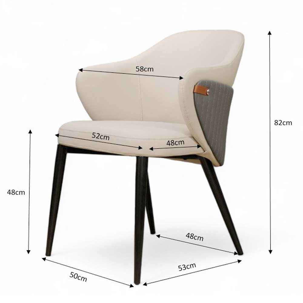Ghế ăn GAK355 sở hữu kiểu dáng thiết kế sang trọng và tinh tế, kết hợp hài hòa giữa các đường nét thanh thoát, tạo nên một điểm nhấn ấn tượng cho khu vực bàn ăn. Phần lưng ghế được tạo dáng bo tròn và có độ ngã phù hợp với tư thế người ngồi, giúp ôm sát cơ thể và mang đến sự thoải mái tối đa khi sử dụng. Phía sau lưng ghế được may decor tinh tế, tạo điểm nhấn sang trọng cho không gian. Chân ghế vuốt côn, bo tròn mềm mại và thanh thoát, góp phần tạo nên sự hài hòa cho tổng thể thiết kế.