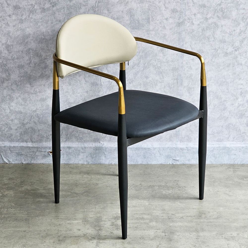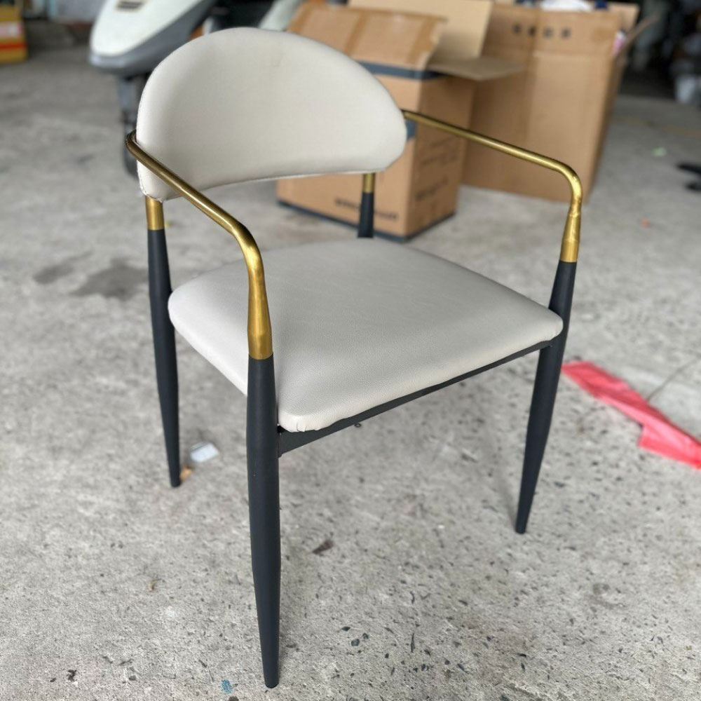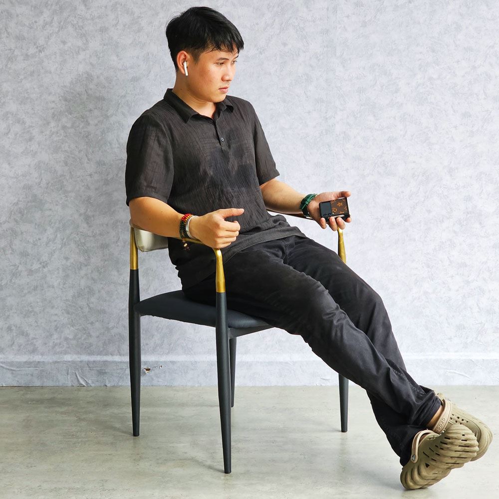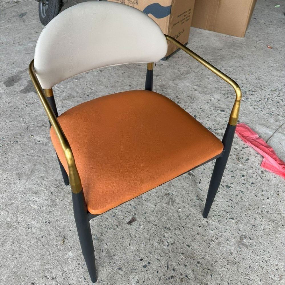 Ghế ăn mang vẻ đẹp kiêu sa sang trọng nhờ vào khung tay tựa và lưng ghế bằng inox mạ màu vàng sáng bóng. Xét về form dáng đường nét bo tròn không thô cứng, diện tích ngồi rộng rãi thoải mái. Một chiếc ghế đem lại cảm giác ngồi thoải mái đã chiếm 50% thiện cảm từ khách hàng; 50% còn lại dựa vào chất liệu, kiểu dáng và màu sắc.