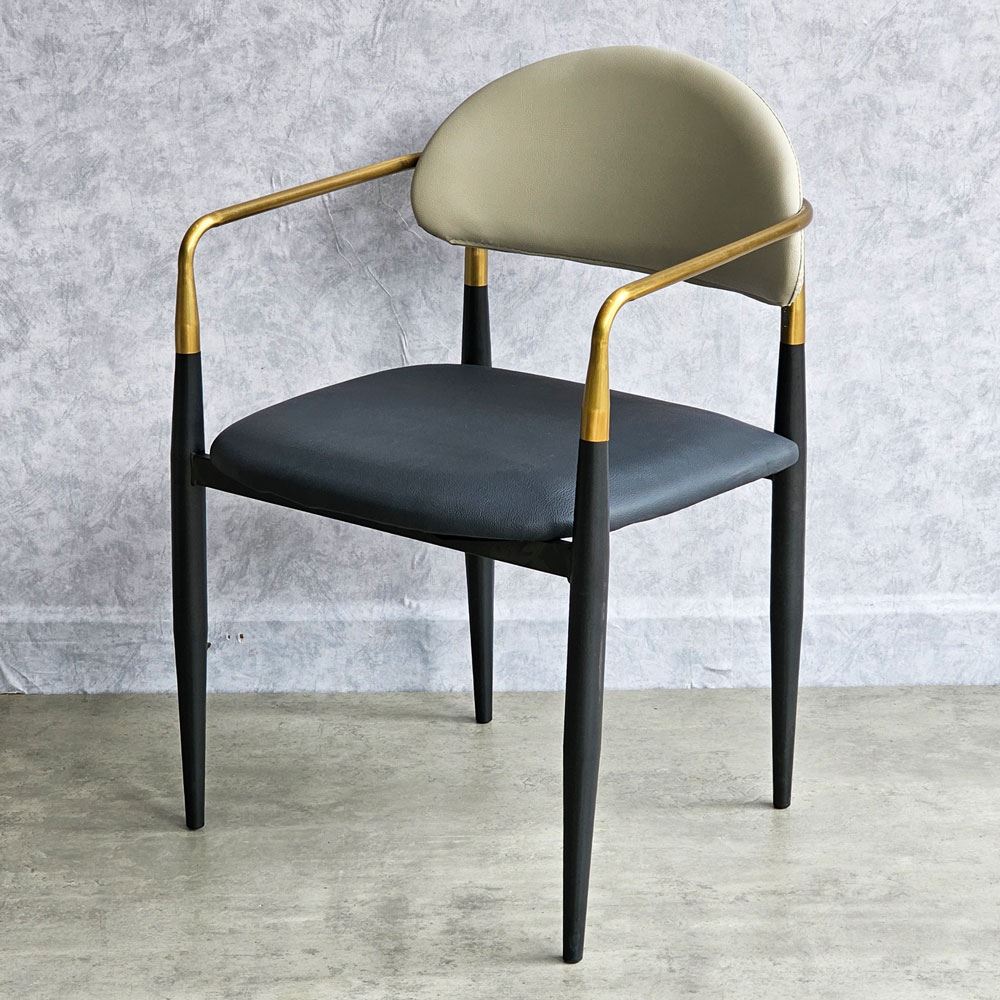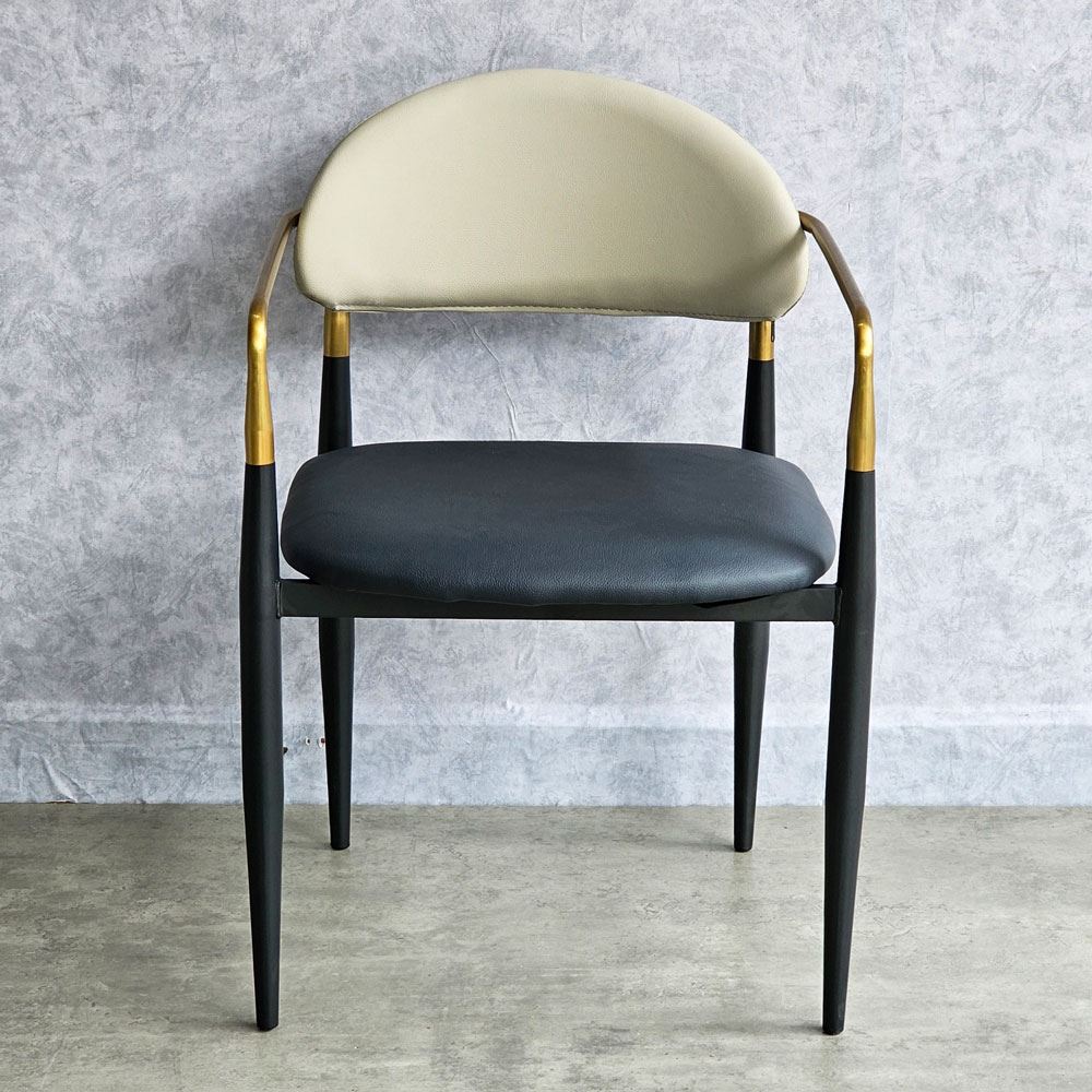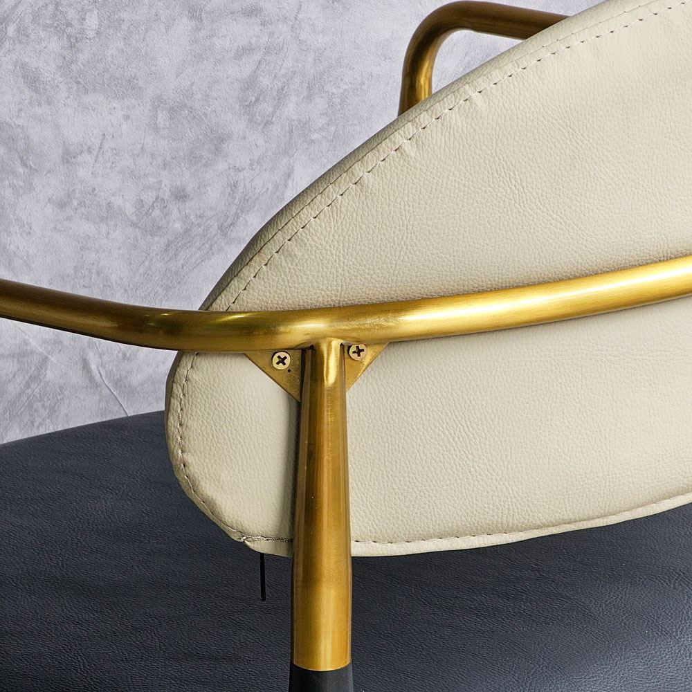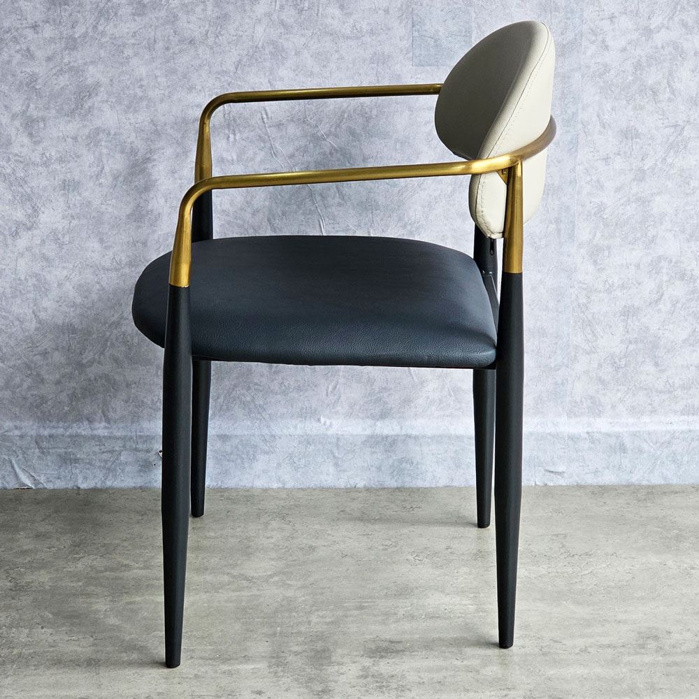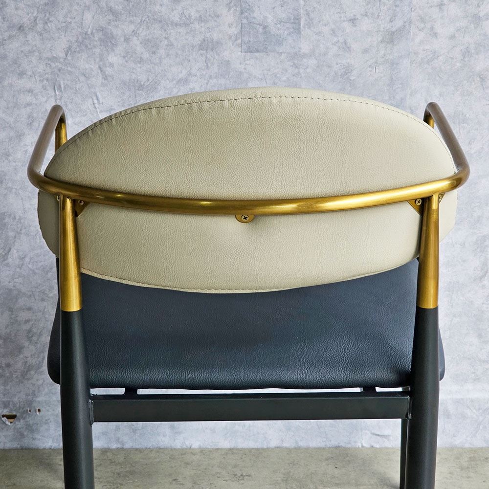 Ghế ăn mang vẻ đẹp kiêu sa sang trọng nhờ vào khung tay tựa và lưng ghế bằng inox mạ màu vàng sáng bóng. Xét về form dáng đường nét bo tròn không thô cứng, diện tích ngồi rộng rãi thoải mái. Một chiếc ghế đem lại cảm giác ngồi thoải mái đã chiếm 50% thiện cảm từ khách hàng; 50% còn lại dựa vào chất liệu, kiểu dáng và màu sắc.
