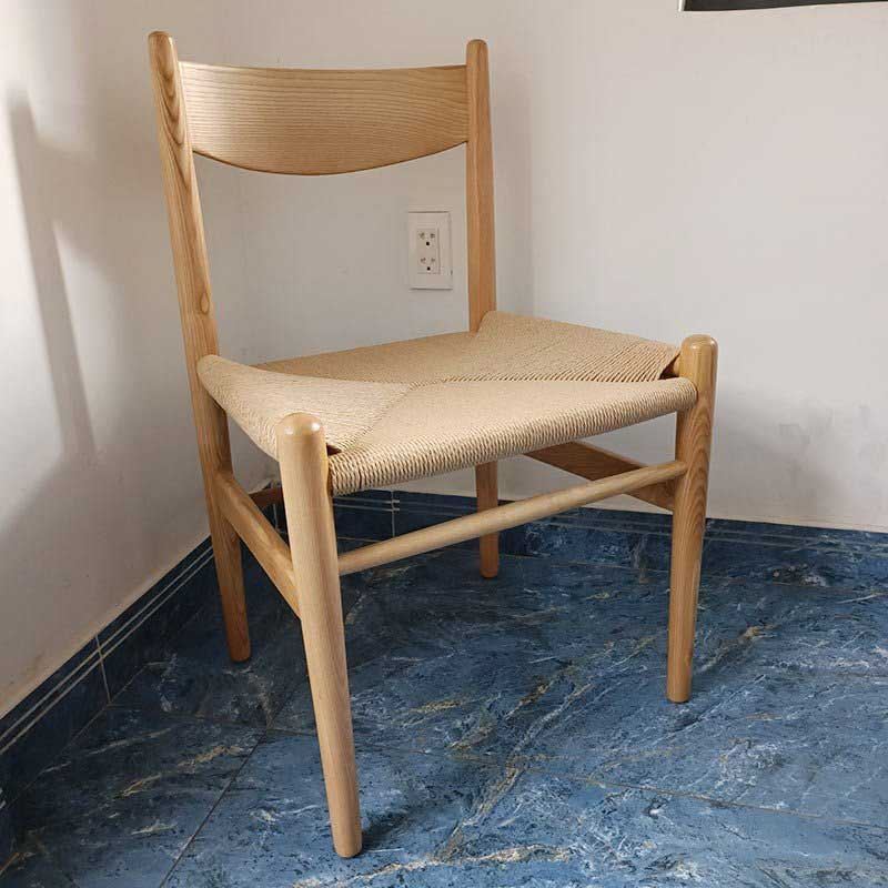Ghế ăn, ghế cafe khung gỗ Ash GCF144 có thiết kế phong cách Bắc Âu hay phong cách Scandinavian với kiểu dáng đơn giản nhưng vẫn toát lên vẻ đẹp nhẹ nhàng, tinh tế, mẫu ghế GCF144 là sự lựa chọn đáng để cân nhắc nếu bạn là tín đồ của phong cách tối giản. Khung ghế được làm từ gỗ tần bì cao cấp (hay còn gọi là gỗ Ash), gỗ được xử lý và hoàn thiện tốt nên bạn có thể thấy vân gỗ tự nhiên hiện lên đẹp mắt, tựa lưng gỗ được uốn cong ôm trọn phần lưng mang đến sự thoải mái khi ngồi. Đặc biệt phần nệm ngồi là các sợi dây được đan vào nhau thành một khối vô cùng chắc chắn.