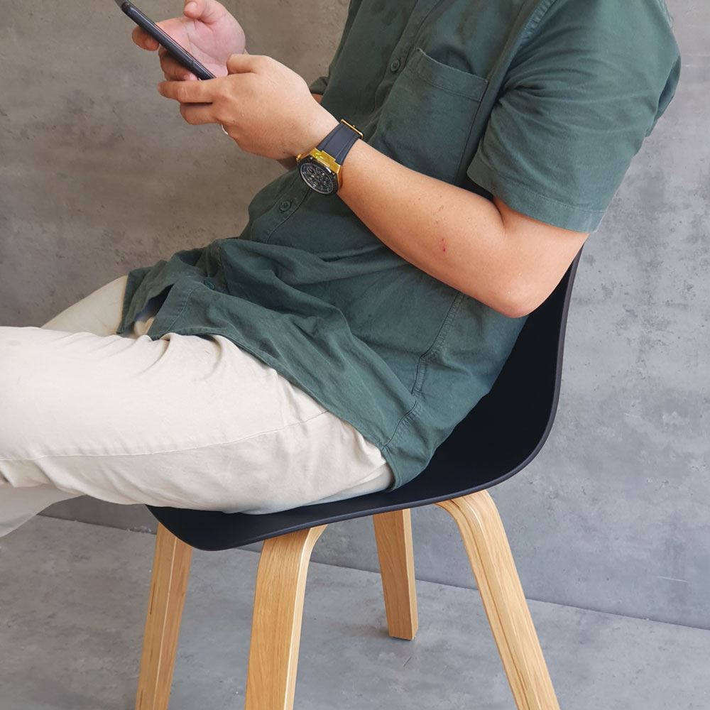Chất liệu lưng ghế là loại nhựa PP cao cấp, có khả năng chống va đạp, chống trầy xước, đảm bảo sự ổn định và bền bỉ trong quá trình sử dụng. Chân ghế được làm bằng gỗ plywood có khả năng chịu lực tốt.