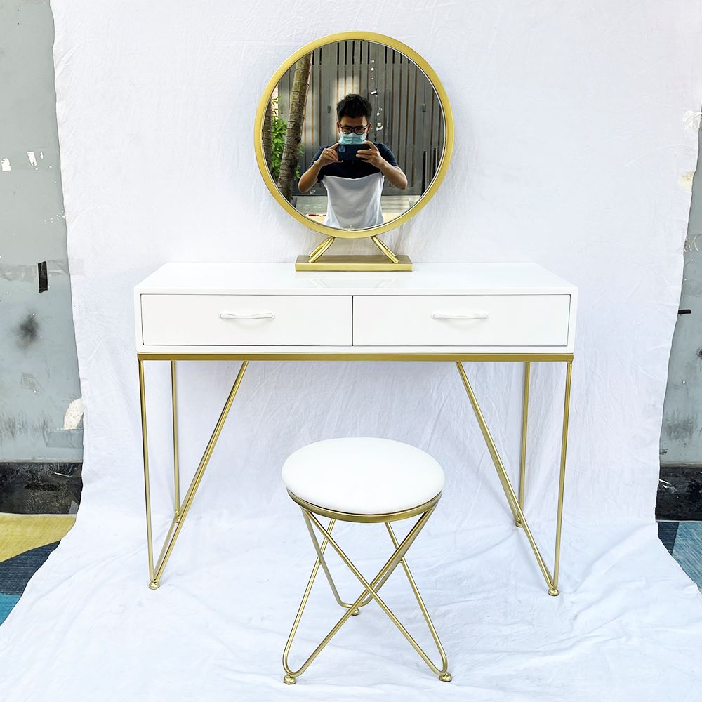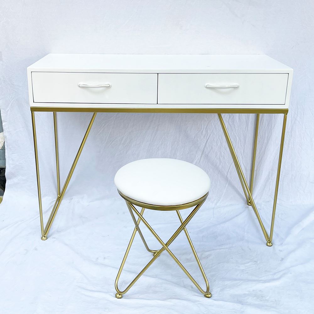 Bộ bàn ghế trang điểm khung chữ V vàng đồng